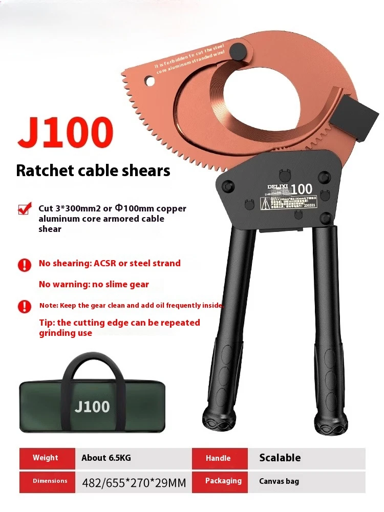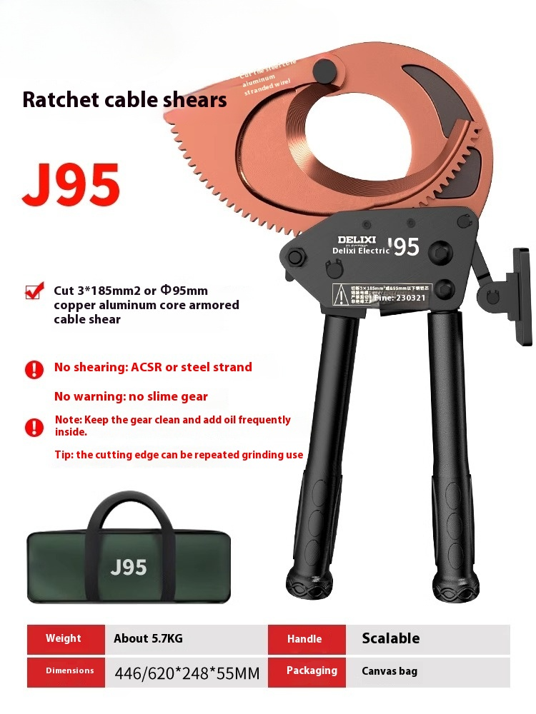 Ratchet Cable Scissors Special Gear Type Manual Cutters Electrician Wire Cutters J40 Industrial Grade Ratchet Cable Cutter Weight: about 1.15KG Size: 346*120*38MM Handle: non-retractable Packing: Canvas bag