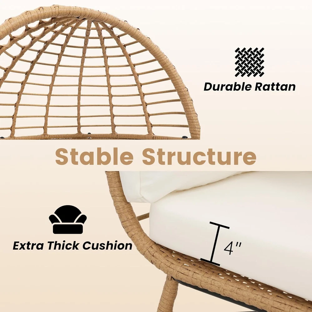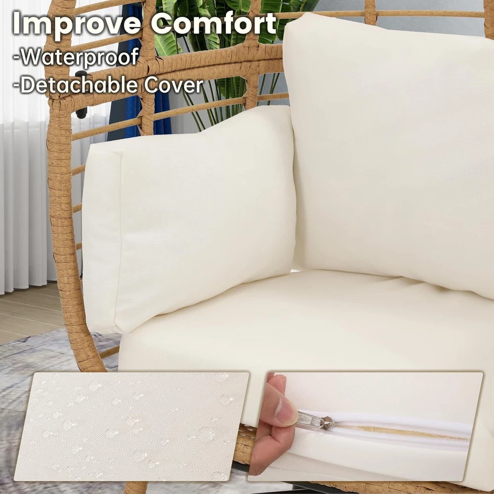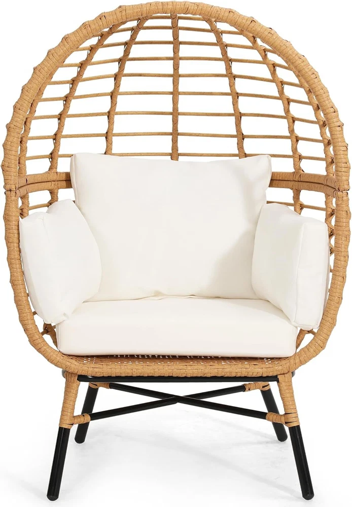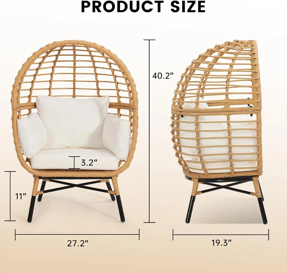 The item was shipped through US Stock, so it arrived faster than expected Ratta n Egg Chair for Children, Indoor Outdoor Wicker Kids Egg Chair, Patio, Bedroom, Living Room, Overstuffed Cushions, Natural Rattan with Beige Cushion Brand Murag Color Beige Cushion Product Dimensions 19.3"D x 27.2"W x 40.2"H Size Children-Natural+Beige Back Style Solid Back About this item 【RECOMMENDED FOR CHILDREN 7 AND UNDER】The ideal accent chair for children 7 and under. Built with the same quality as our adult sized egg chairs. 【INDOOR EGG CHAIR, PATIO EGG CHAIR】Designed and engineered for outdoor patio use or as an indoor accent chair. Over stuffed water resistant cushions make for the perfect play chair for your active children. 【NO SHARP EDGES】Your children can use the chair without worrying about sharp edges or other things which might cause a scratch or harm. 【COMFORT AND STABILITY】Designed for maximum comfort and stability. The frame is supported by powder coated rust resistant steel and then hand wrapped in UV resistant PE rattan for extra long life cycle. This egg chair will look great for many years, even if kept outside in the weather. 【FAST ASSEMBLY AND EASY CLEANING】We designed our egg chair with a minimum of parts for fast pain free assembly with clearly written frustration free instructions.