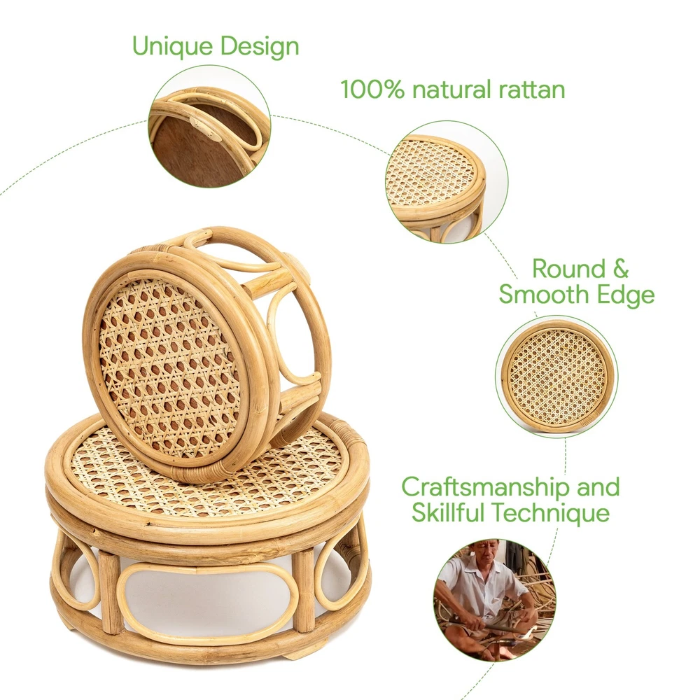 Large Rattan Wicker Round Risers Decorative Indoor Plant Stand, Rustic Farmhouse Natural Small Wooden Circle Pedestal For Decor & Display, Boho Home Decor, Set of 2 🎯 【VERSATILE DESIGN】: Natural rattan round riser perfect for displaying plants, decor items, or as a decorative accent piece in any room. Boho plant stand with a stand-by Kutorkill will be a great addition to any lovely homes especially to all the plant lover out there. 🎯 【HANDCRAFTED DETAILS】: Rattan plant stand is made of high quality natural rattan - can allow for a weight up 60lbs (Small) to 120 lbs (Large). Beautiful woven cane pattern seat and sturdy rattan frame create an elegant bohemian aesthetic. 🎯 【COMPACT SIZE】: The small size rattan stool display stand is: 9½" × 4¾", and the large size of our stand is: 12.0" × 6.0". Perfect tabletop size for small spaces, featuring an elevated design that adds height to displayed items. 🎯 【RUSTIC CHARM】: The indoor plant stand is made of natural rattan with a coat designed in a novel, impressive, unique, and completely different way from previous models of plant stand. Boho plant stands is completely handmade by experienced artisans.
