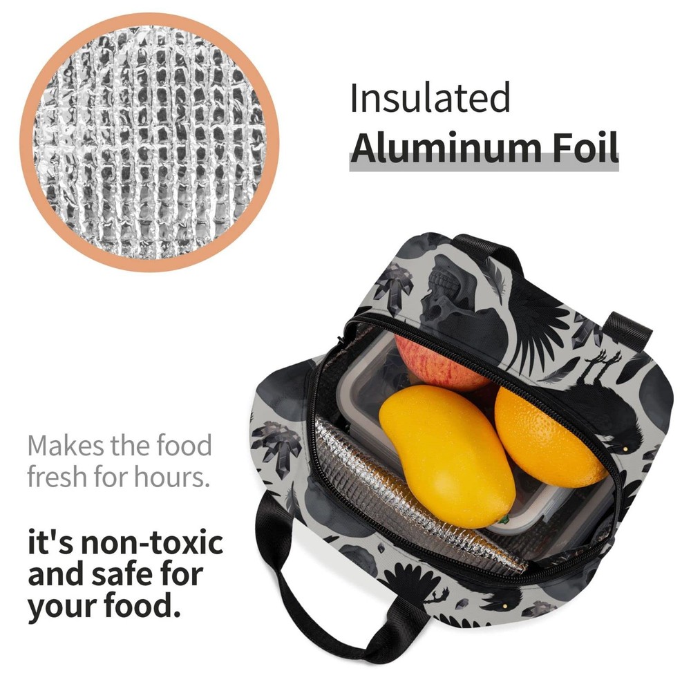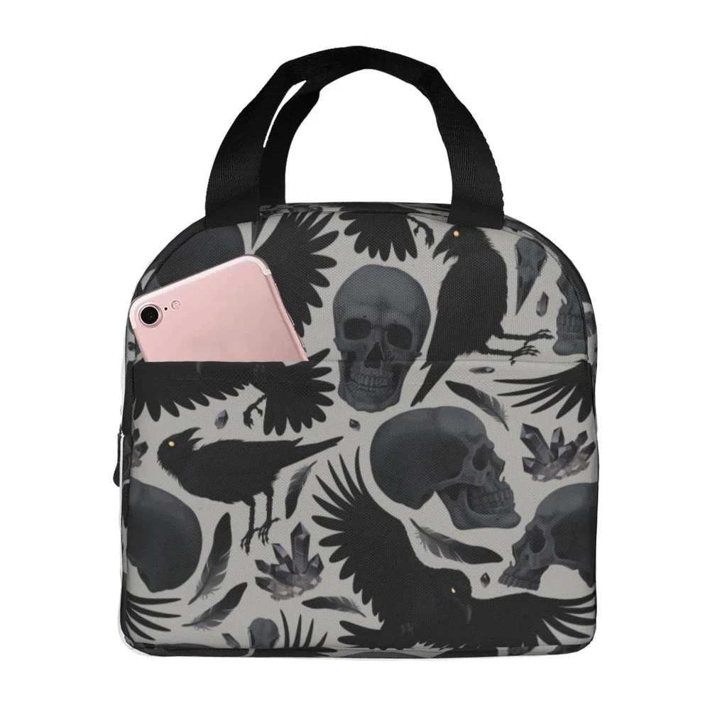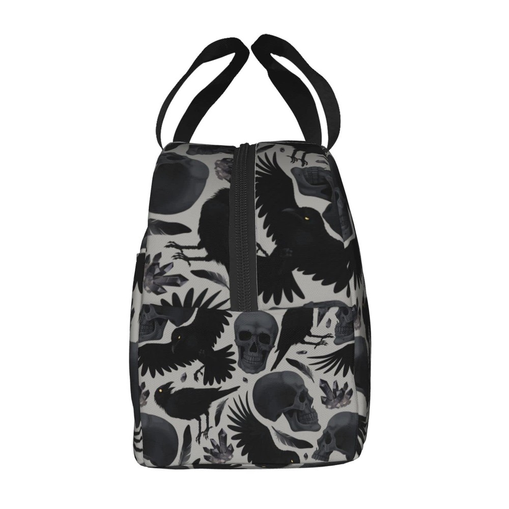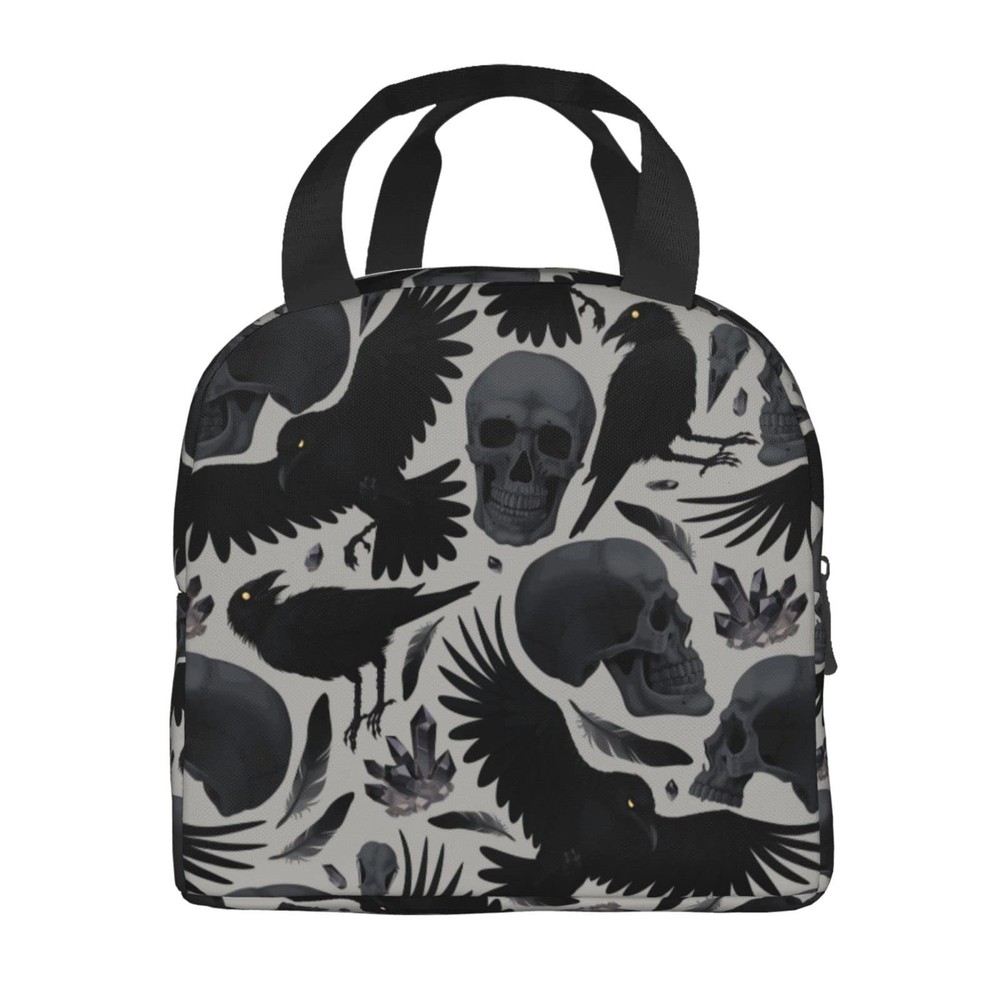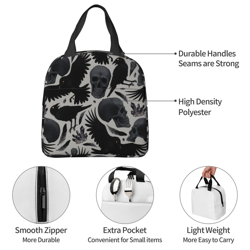 Ravens Skull Halloween Horror Insulated Lunch Bag For Men Women Reusable Lunc...