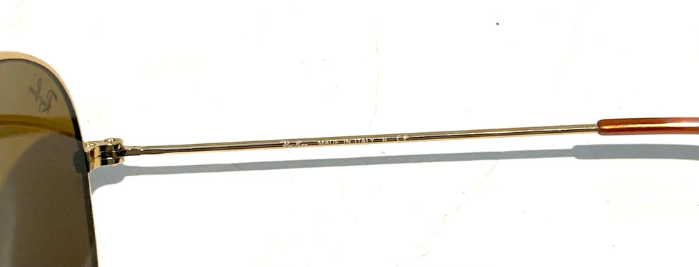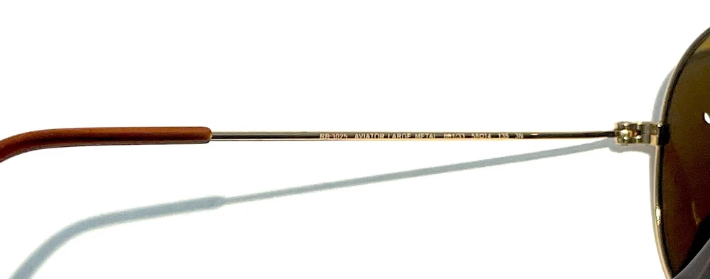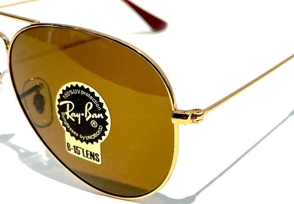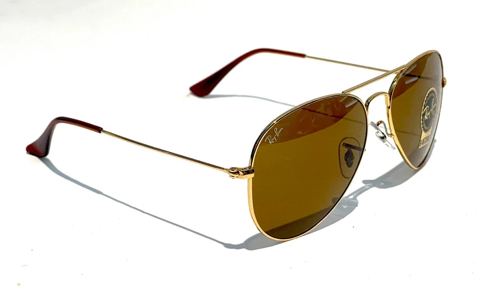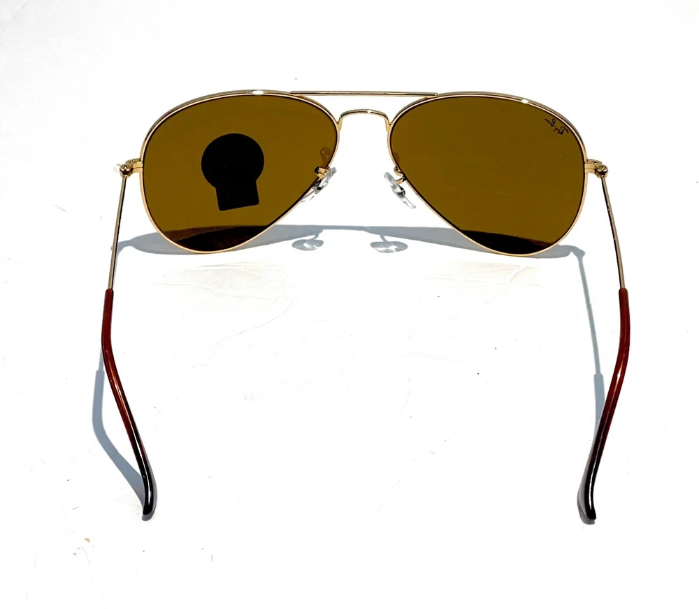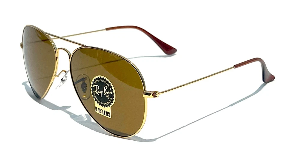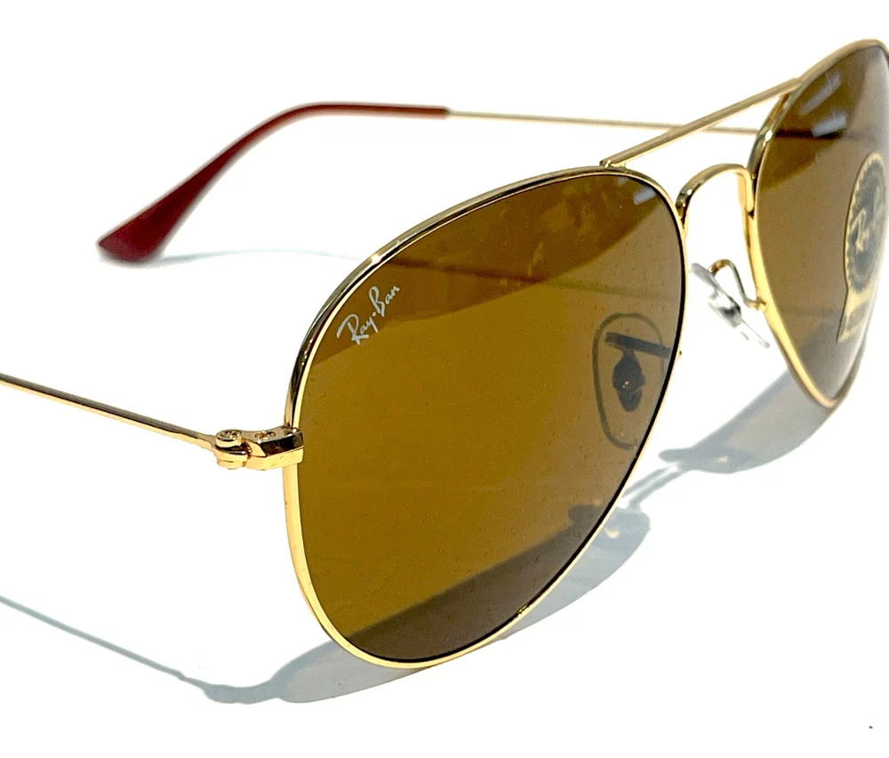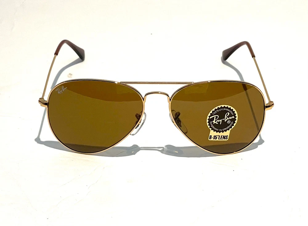 GUARANTEED 100% AUTHENTIC Product Details: Model code: RB3025 001/33 58-14 Currently one of the most iconic sunglass models in the world, Ray-Ban Aviator Classic were originally designed for U.S. aviators in 1937. Aviator Classic sunglasses are a timeless model that combines great styling with exceptional quality, performance and comfort. With a classic gold frame, you can see the world with optimum visual clarity and 100% UV protection. Frame material: Metal Frame color: Gold Lenses: Classic Brown B-15 Shape: Pilot Size lens-bridge: 58 14 Temple Length: 135 Package includes: microfiber cloth, paperwork, Ray-Ban Sunglasses, case and outer box. Shipped with USPS First Class. thank you for shopping with us !!