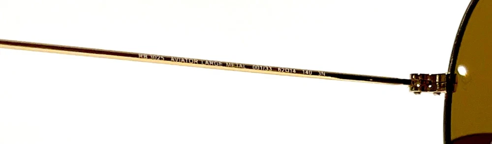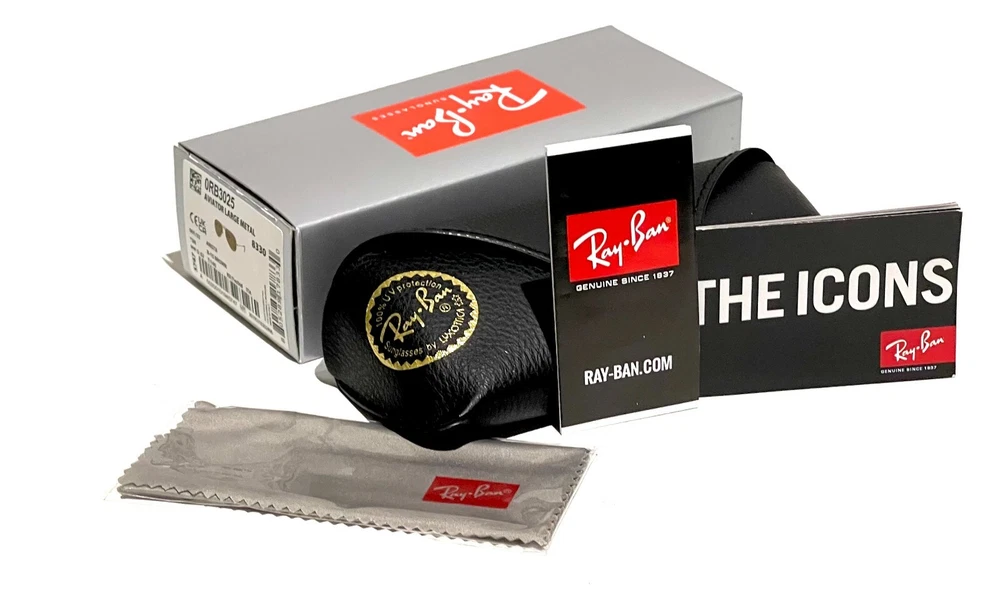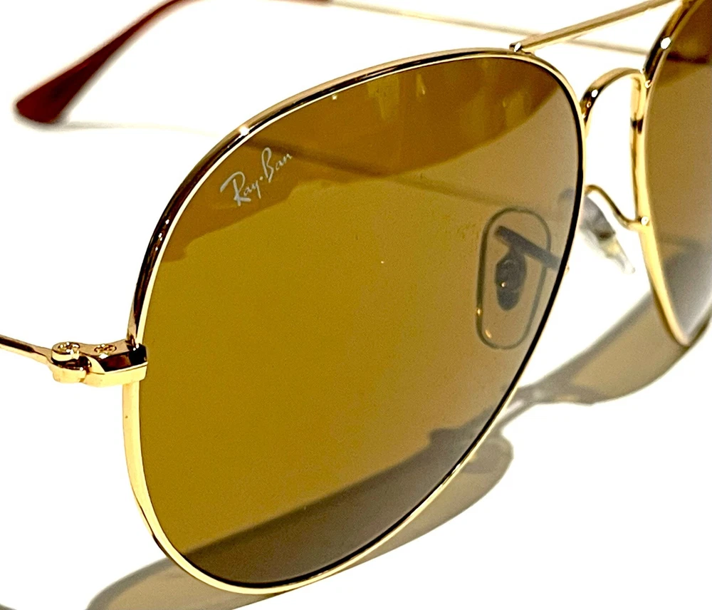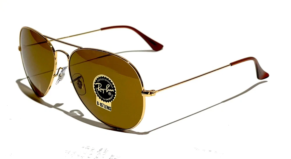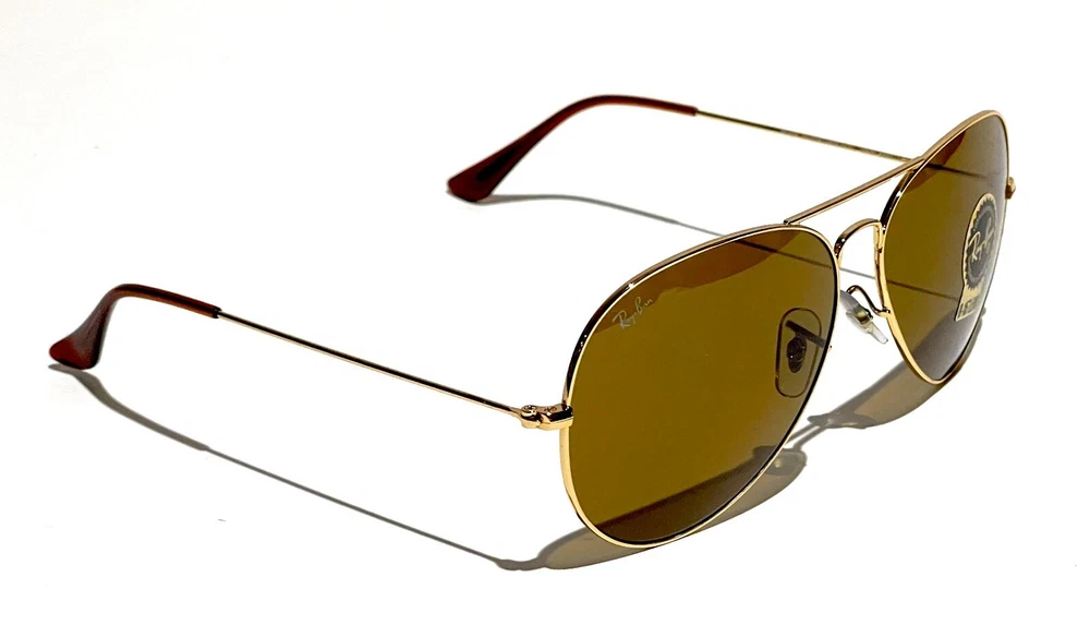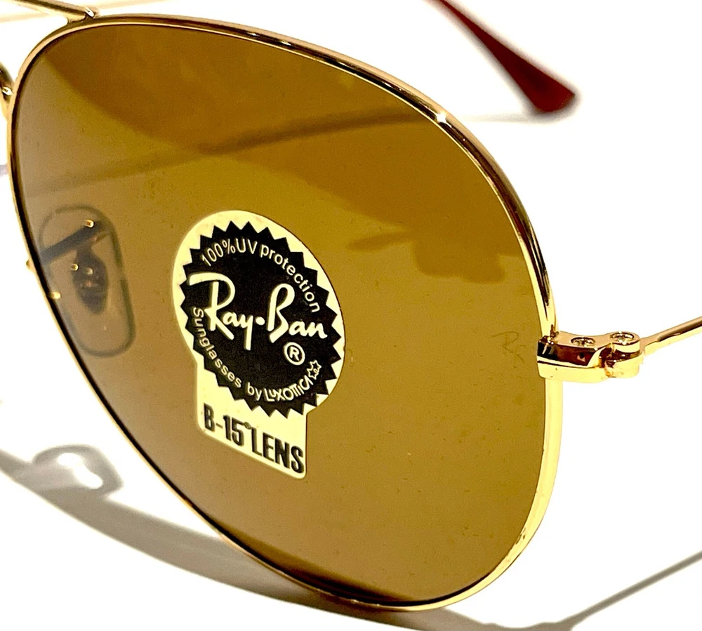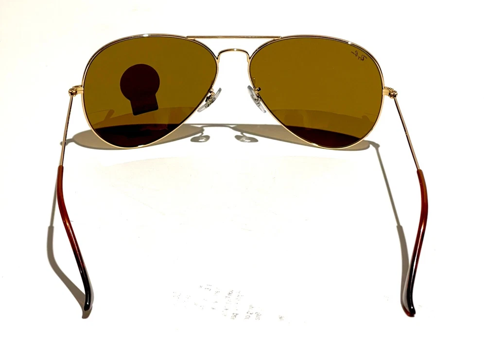 GUARANTEED 100% AUTHENTIC Product Details: Model code: RB3025 001/33 62-14 Currently one of the most iconic sunglass models in the world, Ray-Ban Aviator Classic were originally designed for U.S. aviators in 1937. Aviator Classic sunglasses are a timeless model that combines great styling with exceptional quality, performance and comfort. With a classic gold frame, you can see the world with optimum visual clarity and 100% UV protection. Frame material: Metal Frame color: Gold Lenses: Classic Brown B-15 Shape: Pilot Size lens-bridge: 62 14 Temple Length: 140 Package includes: microfiber cloth, paperwork, Ray-Ban Sunglasses, case and outer box. Shipped with USPS First Class. thank you for shopping with us !!