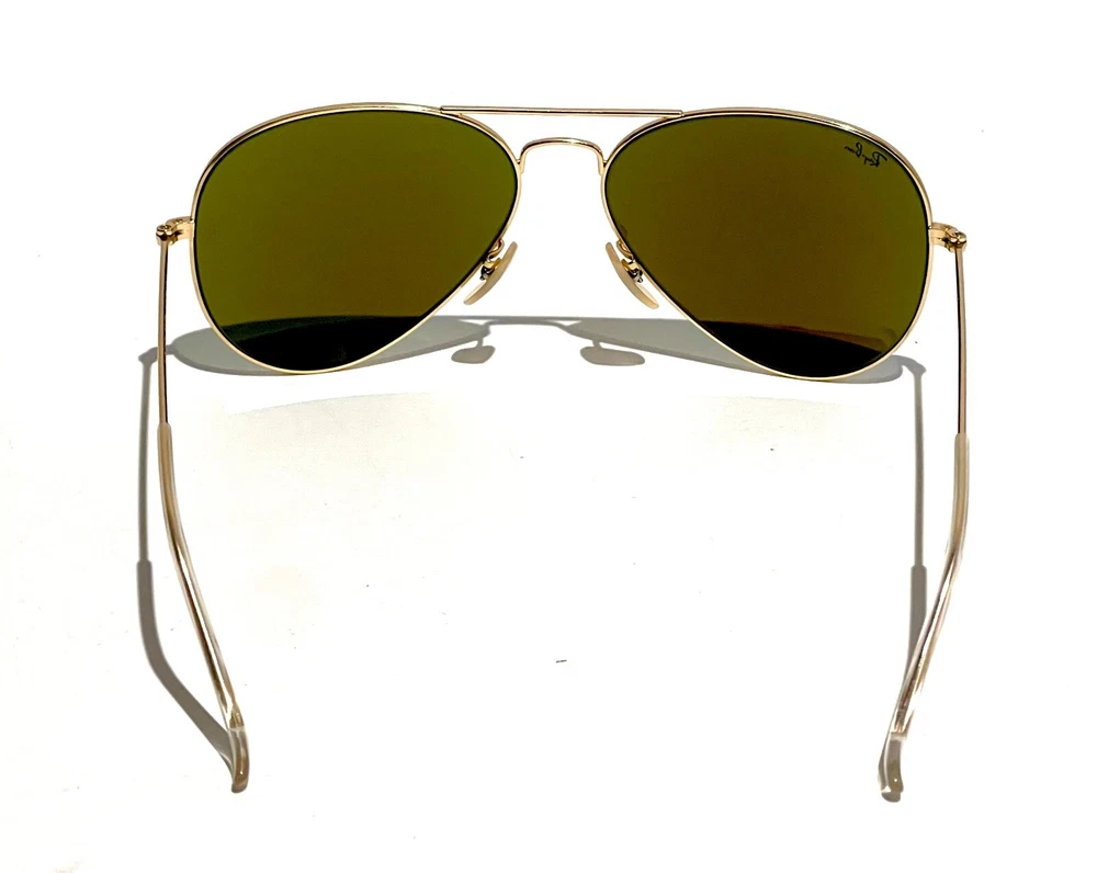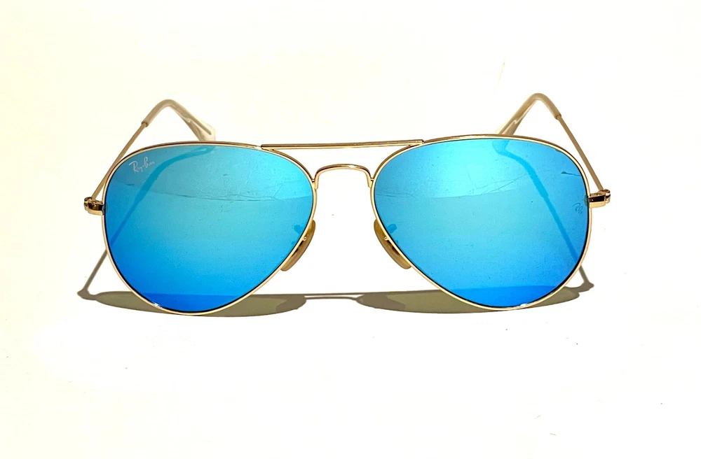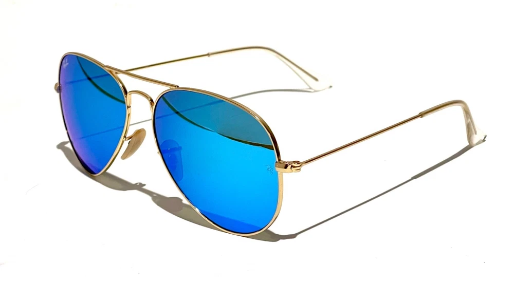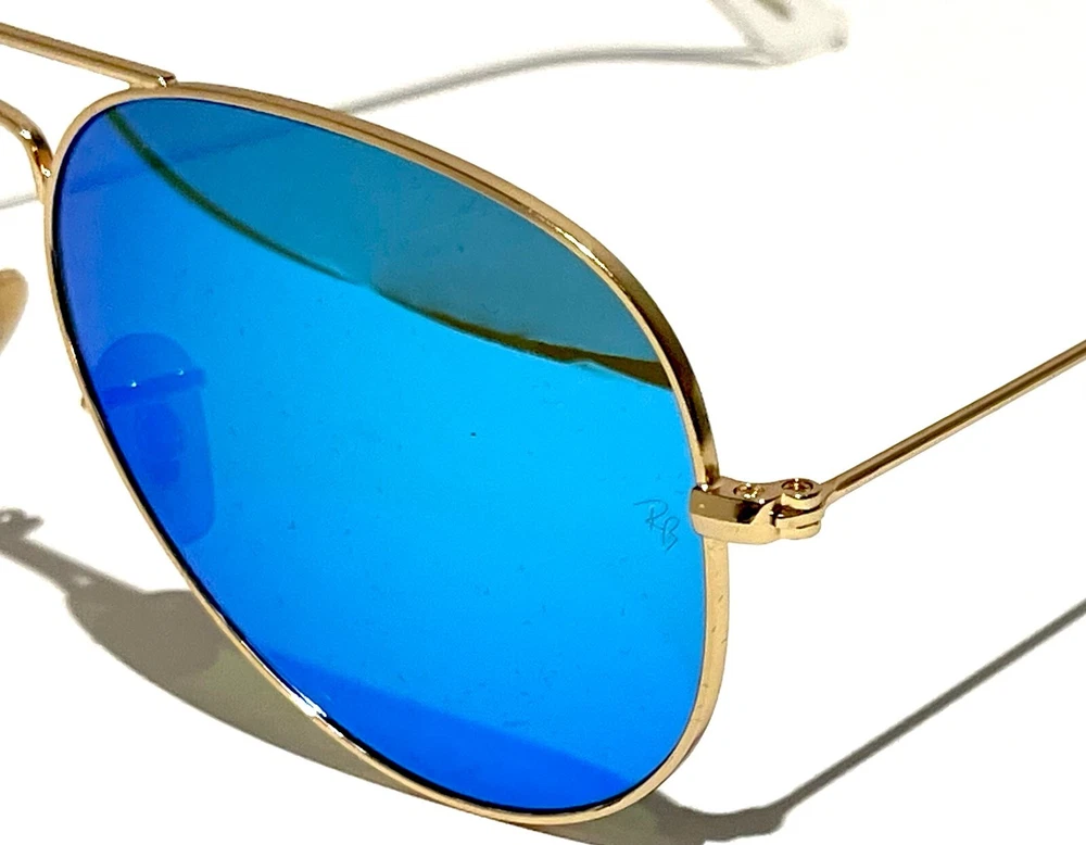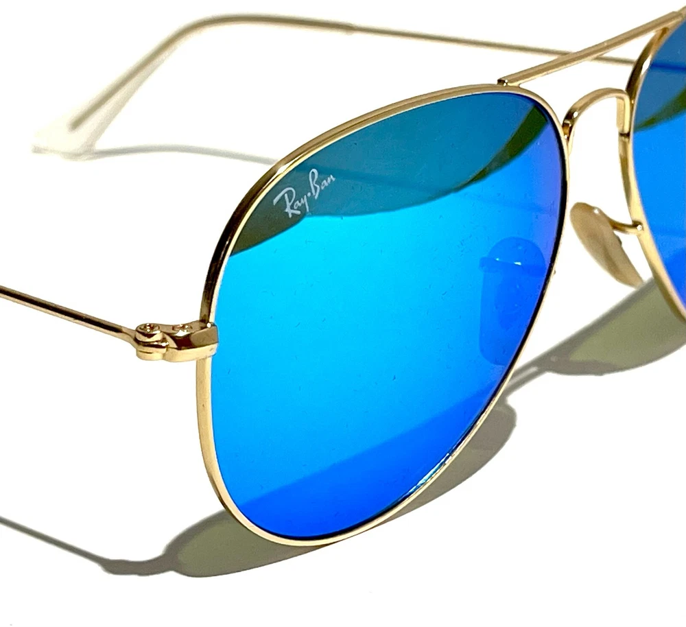 GUARANTEED 100% AUTHENTIC Product Details: Model code: RB3025 112/17 58-14 Currently one of the most iconic sunglass models in the world, Ray-Ban Aviator Classic were originally designed for U.S. aviators in 1937. Aviator Classic sunglasses are a timeless model that combines great styling with exceptional quality, performance and comfort. With a classic gold frame, you can see the world with optimum visual clarity and 100% UV protection. Frame material: Metal Frame color: Matte Gold Lenses: Blue Flash Mirror Shape: Pilot Size lens-bridge: 58 14 Temple Length: 135 Package includes: microfiber cloth, paperwork, Ray-Ban Sunglasses, case and outer box. Shipped with USPS First Class. thank you for shopping with us !!