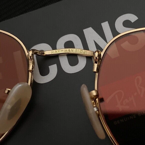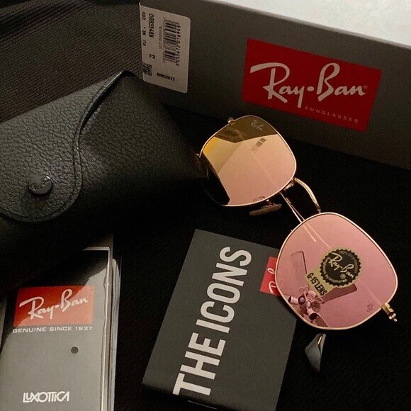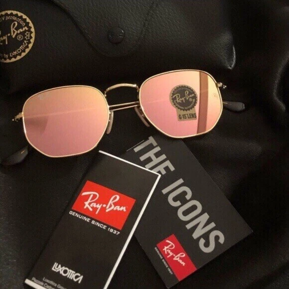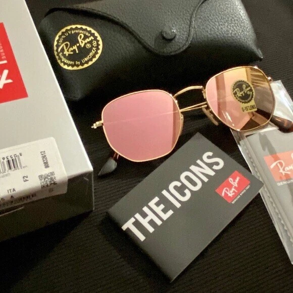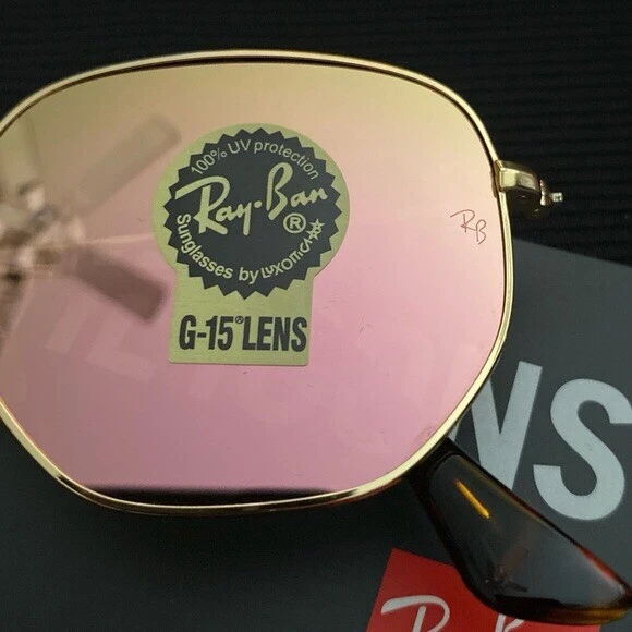 New Ray-Ban Hexagonal RB3548 Gold Frame / Rose Gold Sunglasses Country/Region of Manufacture: Italy Protection: 100% UV Size lens-bridge: 51 21 Frame material: Metal Frame color: Gold Lenses: color : Rose Gold Comes with Box, Case, Cleaning Cloth and Booklets