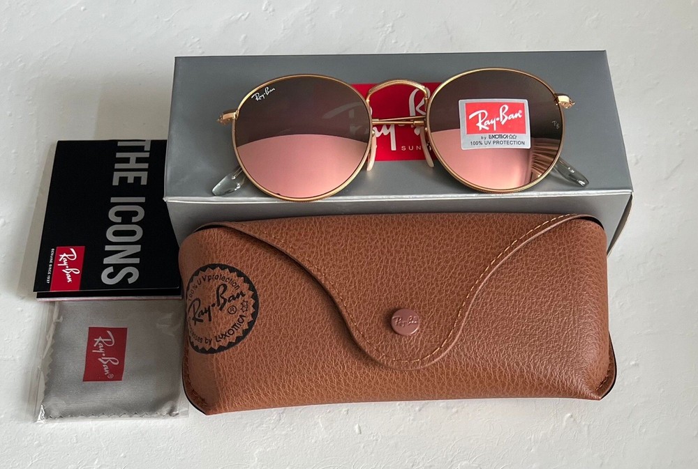 RayBan RB3447 Round Women Sunglasses Flash Mirror Lens Gold Frames. Condition is New with tags. Shipped with USPS Ground Advantage.