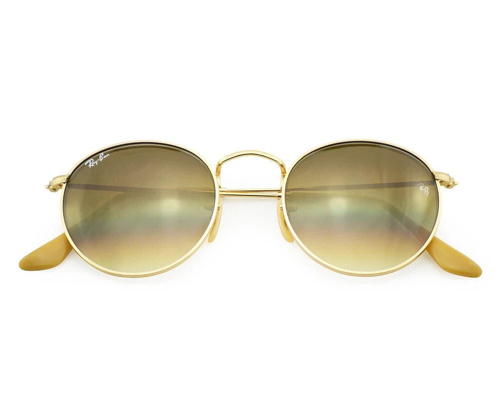Ray-Ban Sunglasses RB3447 Round Metal Gold Frame Light Brown Lenses 50mm Unisex Model No.: RB3447 Color No.: 112/51 Size Lens-Bridge: 50 - 21 Temple Length: 145mm (Standard Size) Frame Material: Metal Frame Color : Matte Gold Lenses Color : Light Brown Gradient Lenses: Non Polarized Shape: Round Style: Round Metal UPC: 8053672405163 Experience ultimate eye protection and vision clarity with Ray-Ban sunglasses. Ray-Ban sunglasses are designed to meet your unique vision needs and are certified with an engraved Ray-Ban signature on the right lens, and the iconic RB initials on the left. Our lenses provide 100% UV protection that not only keep harmful glare and reflections at bay, but also protect your eyes from the sun rays. Trust Ray-Ban to provide superior eye protection and a style that truly reflects your personality. Package Includes: 1X Ray-Ban cleaning cloth 2X Ray-Ban booklet 1X Ray-Ban case 1X Ray-Ban box 1X Protect outer box 1X Mini Screwdriver Repair Tool (*In selected models only) G.W: 300g/Pair The product is shipped by USPS within 1-2 business days and arrives at destination after 2-8 business days