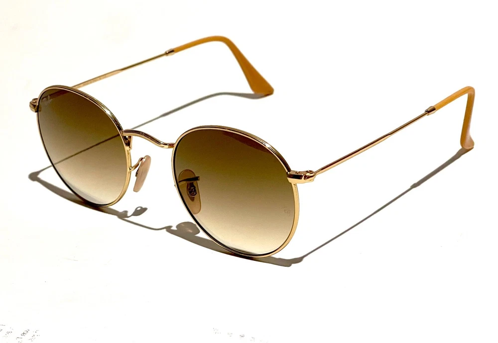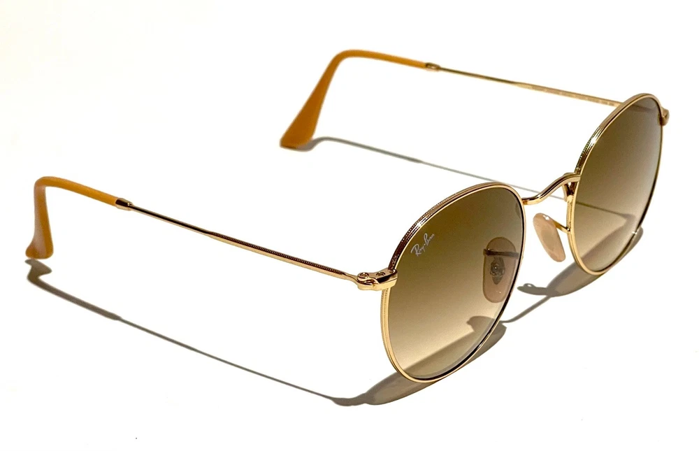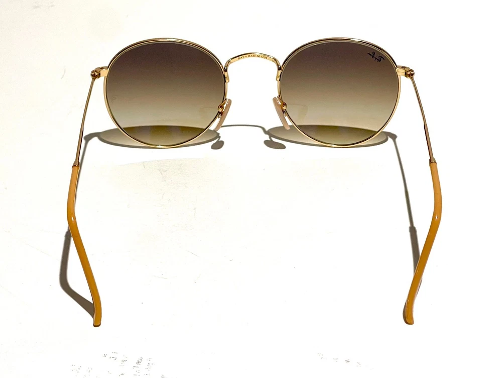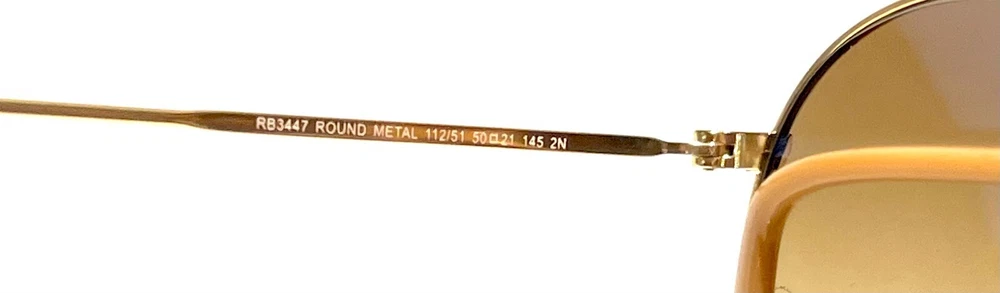 GUARANTEED 100% AUTHENTIC Product Details: Model code: RB3447 112/51 50-21 The Ray-Ban Round Metal sunglasses are totally retro. This look has been worn by legendary musicians and inspired by the 1960s counter-culture when this style first originated. The Ray-Ban unisex metal, iconic sunglasses are known for their defined round crystal lenses and distinct shape. A curved brow bar, adjustable nose pads, and thin metal temples with plastic end tips rest comfortably behind the ears. Available with Legend Gold lens logo, straight from the archive. Frame material: Metal Frame color: Gold Lenses: Light Brown Gradient Shape: Round Size lens-bridge: 50 21 Temple Length: 145 Package includes: microfiber cloth, paperwork, Ray-Ban Sunglasses, case and outer box. Shipped with USPS First Class. thank you for shopping with us !!
