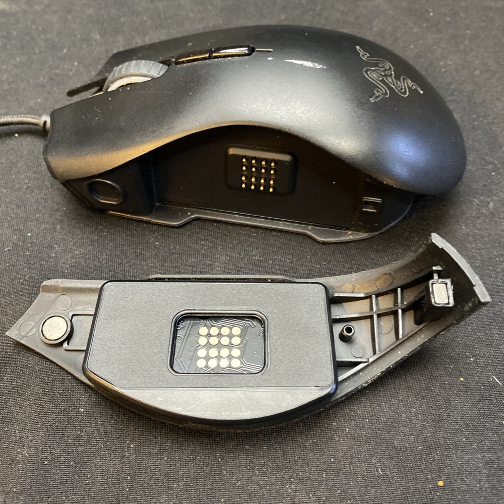 Preowned, fully tested works great, has a couple of wear marks on the top, only has 1 side piece. The Razer Naga Trinity is a versatile wired gaming mouse designed for right-handed users, featuring interchangeable side plates to customize the number of programmable buttons. With a total of 19 buttons, this mouse offers a highly customizable gaming experience, along with adjustable DPI settings for precise control. Its ergonomic design and grip ensure comfort during long gaming sessions. The mouse also includes LED lighting for a stylish touch. Made in the United States, this gaming mouse is ideal for gamers looking for a high-performance and gaming