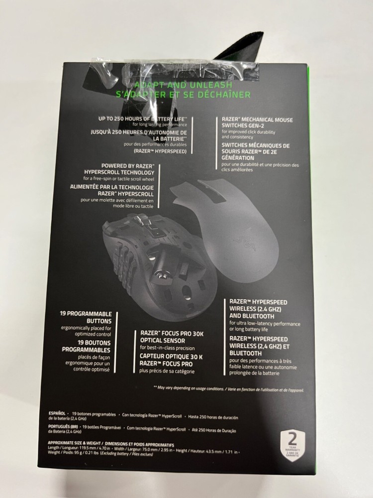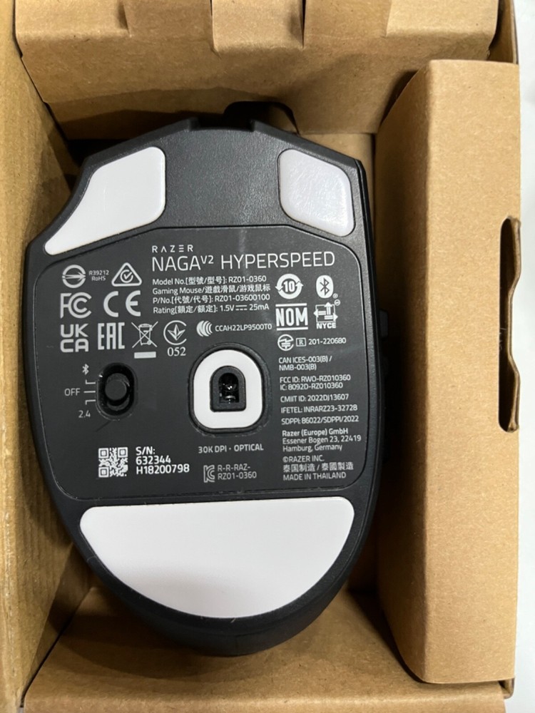 Number of Buttons:19gtin13:0990409348868Connectivity:BluetoothColor:BlackFeatures:Programmable ButtonsTracking Method:OpticalMPN:RZ01-03600100-R3U1Brand:RazerUPC:0990409348868Type:Gaming MouseModel:Razer Naga V2 HyperSpeedMaximum DPI:30000