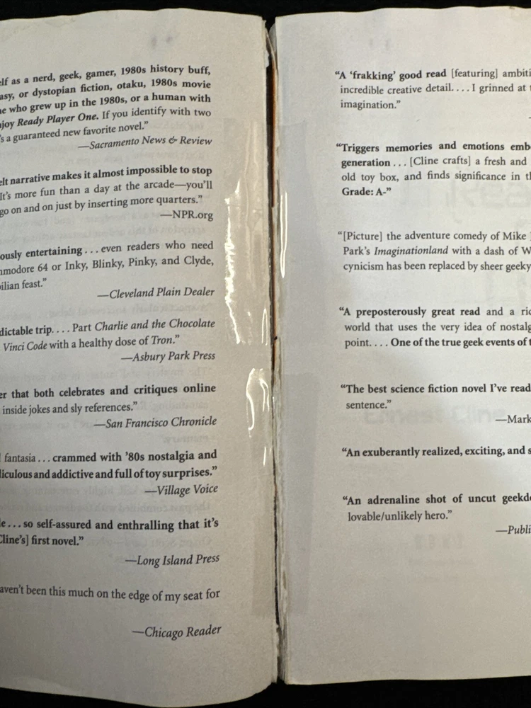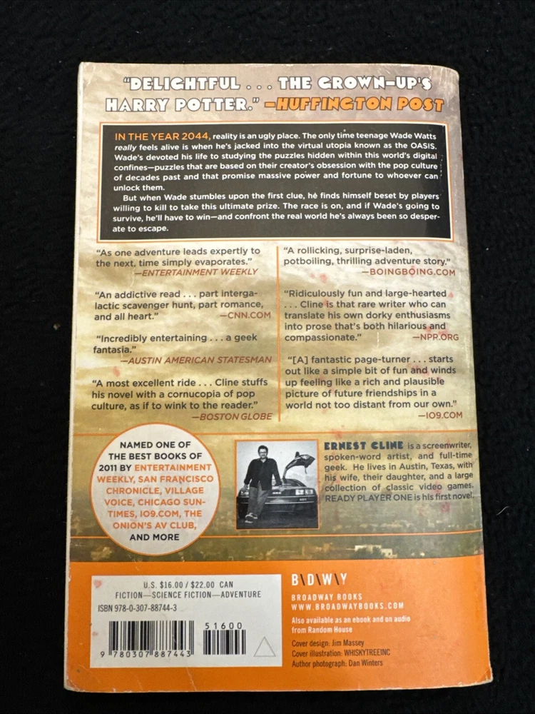 Book Title:Ready Player One : a NovelPublisher:Random House Publishing GroupNumber of Pages:384 PagesGenre:FictionTopic:Science Fiction / Action & Adventure, Dystopian, Thrillers / GeneralISBN:9780307887443Item Weight:9.6 Ozgtin13:9780307887443Item Height:0.8 inPublication Year:2012Language:EnglishType:NovelAuthor:Ernest ClineFormat:Trade PaperbackItem Length:8 inItem Width:5.2 in