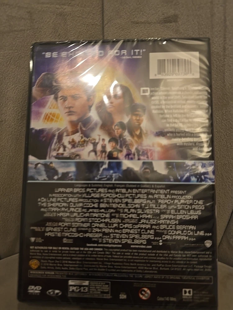 Release Year:2018Movie/TV Title:Ready Player OneSubtitle Language:English, French, SpanishLanguage:English, French, SpanishGenre:Science FictionFormat:DVDgtin13:0883929621460Director:Steven SpielbergRating:PG-13UPC:0883929621460Studio:Warner Home Video