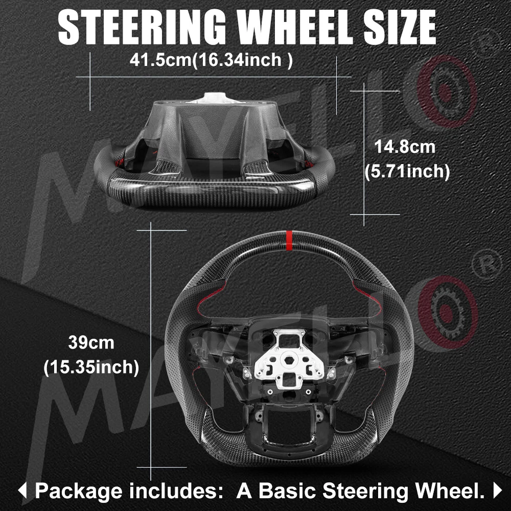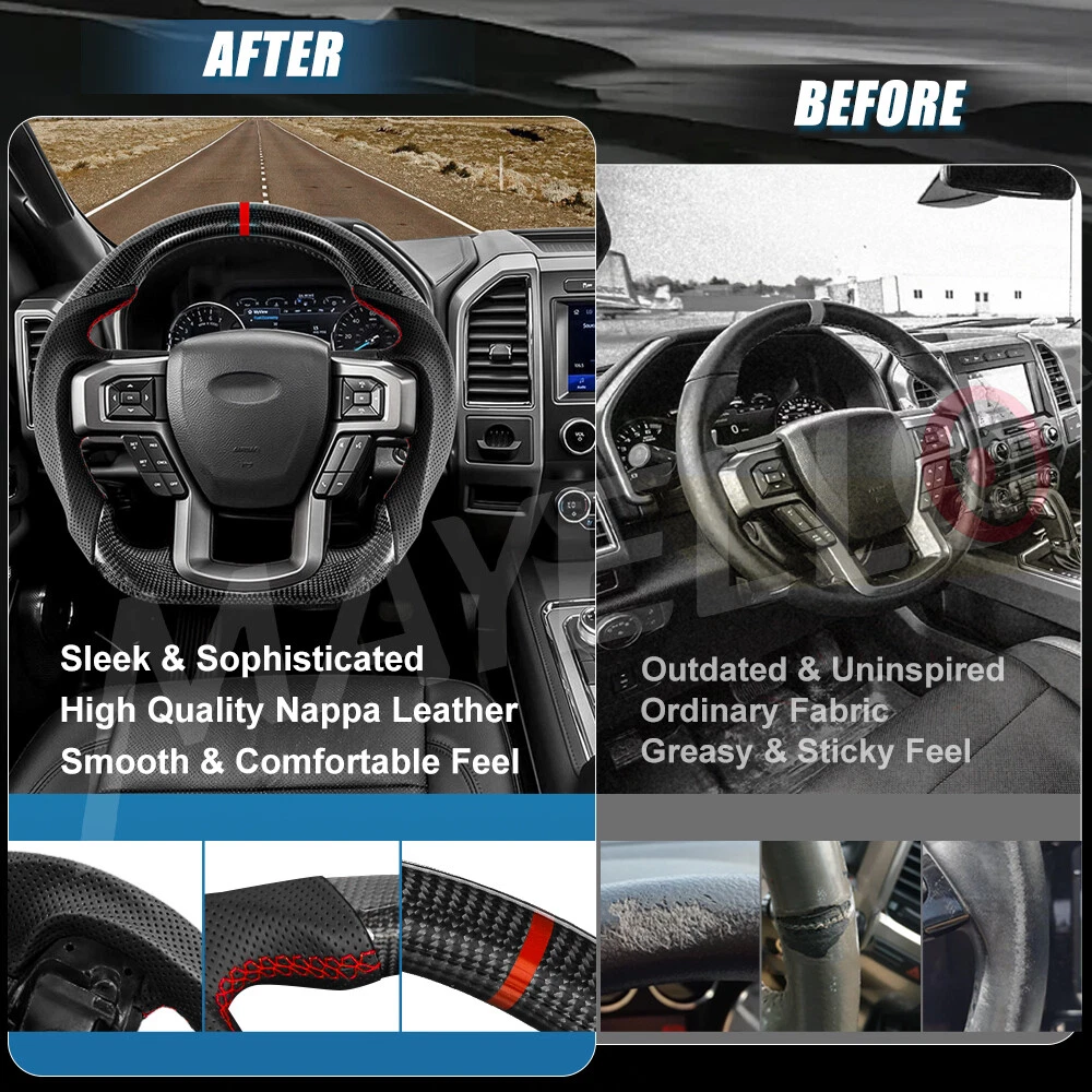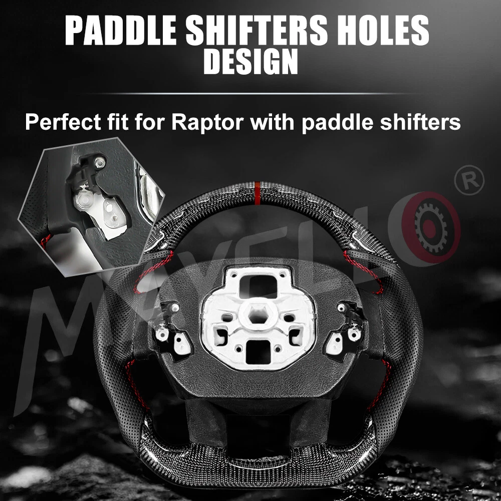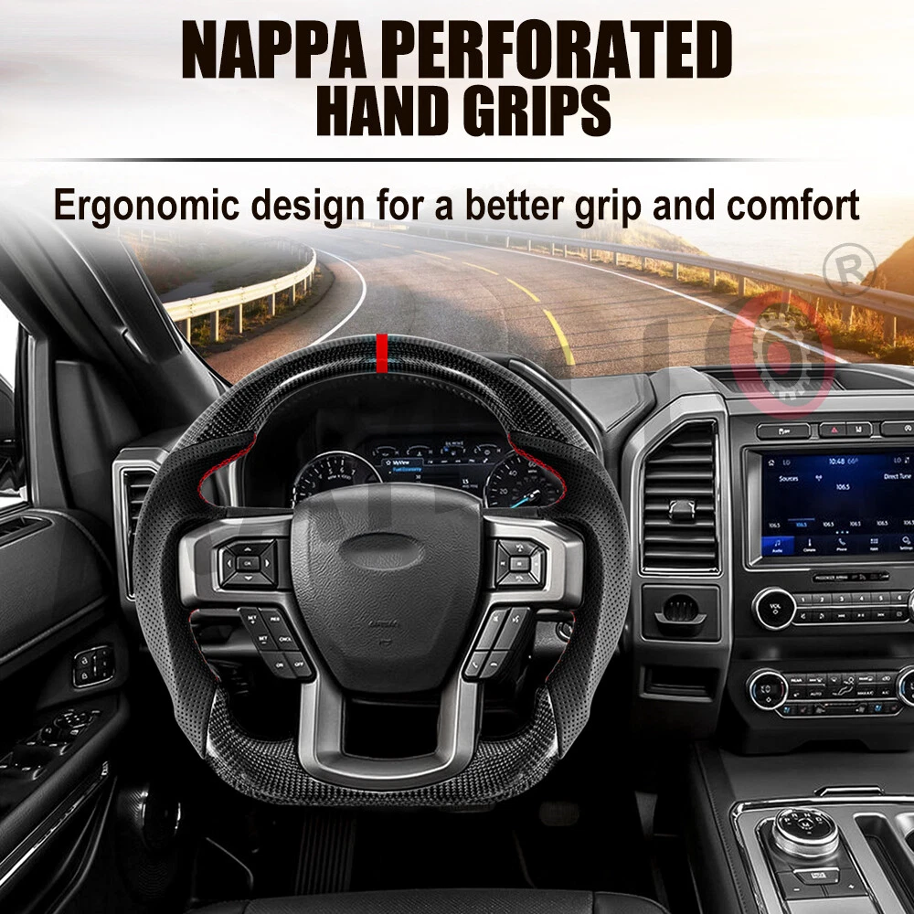 Specification: Condition: 100% Brand New Item Type: Carbon Fiber Steering Wheel Material: Real Carbon Fiber + Preforated Leather Color: As Picture Shown Position:Front Left Inner Stitching: Red 12 O'Clock Stripe: Red Shape: Flat bottom D-type Racing Design Finger Grips: Yes Paddle Cutouts: YES Heated: No Warranty: 1 Year Fitment: 2015-2020 Ford F150 Raptor Package List: 1 x Carbon Fiber Steering Wheel Real Carbon Fiber Steering Wheel D-shaped for Ford Raptor F150 2015-20 No Heated Specification: Condition: 100% Brand New Item Type: Carbon Fiber Steering Wheel Material: Real Carbon Fiber + Preforated Leather Color: As Picture Shown Position:Front Left Inner Stitching: Red 12 O'Clock Stripe: Red Shape: Flat bottom D-type Racing Design Finger Grips: Yes Paddle Cutouts: YES Heated: No Warranty: 1 Year Fitment: 2015-2020 Ford F150 Raptor Package List: 1 x Carbon Fiber Steering Wheel Non-Domestic Product No Fitment Type Direct Replacement Items Included Steering Wheel Color Black Manufacturer Part Number AFXPG0KVLIAHN Mounting Hardware Included No Material Carbon Fiber, Perforated leather Placement on Vehicle Left Modified Item Yes Brand MAYELLO Type Steering Wheel Manufacturer Warranty 1 Year Surface Finish carbon fiber Features Finger Grips, Lightweight, Quick Release, Red stitching & stripe Horn Type Direct Air On Sep 19, 2024 at 05:49:12 PDT, seller added the following information: