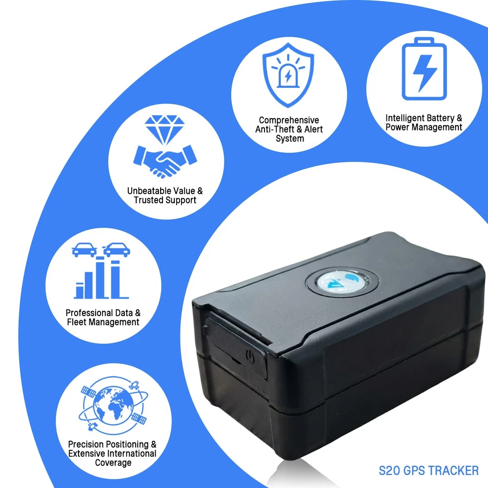 GP30 4G LTE GPS Pet Tracker | Wanway Tech - Your Global IoT Partner S20 Professional GPS Tracker All-in-One Guardian ! Real-Time Tracking, Location Accuracy ? 5m 270-Day History Playback Electronic Fence Subscription as low as $5/month FREE Global SIM Card 5-Account Sharing 4 working mode Guarding 6000mAh Rechargeable Battery Comprehensive Alert Ecosystem Strong Built-In Magnet Universal GPS Tracker Core Tracking Capabilities The S20 GPS Tracker delivers three essential pillars of professional tracking technology, combining precision, historical analytics, and proactive security into one comprehensive solution. These core features work synergistically to provide complete asset visibility and control. Most Used Real-Time GPS Tracking Support GPS+LBS positioning method to quickly obtain device location. Accurate Positioning ? 5m: See exact parking spot. Key Benefit Instant visibility reduces theft risk and improves operational efficiency. Perfect for fleet management and high-value asset protection. Update Frequency: 4 working modes Positioning Methods: GPS,GPS + WIFI,GPS + WIFI + LBS Unlimited Distance: Track anywhere with signal Analytics 270-Day History Playback Access 9 months of detailed location history with comprehensive playback and reporting tools. Analytics Value Identify usage patterns, optimize routes, and generate detailed reports for compliance and operational analysis. History Storage: 270 days Features: Trajectory playback screening, stop markers, Playback speed control Export: Export travel history reports Security Custom Geo-Fencing Draw Your Own Security Zone. Security Advantage Protect against unauthorized movement, monitor delivery zones, and ensure assets remain within approved operating areas. Shapes: Circle, polygon, custom Alerts: Entry & exit notifications Integrated Ecosystem These three core capabilities form a complete tracking ecosystem: Real-time monitoring for immediate awareness, historical analytics for informed decision-making, and proactive geofencing for automated security. Together, they provide a 360° view of your assets' movements and status. Global Coverage & Connectivity FREE Global SIM Card Included with every device. Works in over 90% of countries worldwide. Unlimited Distance Tracking Track your assets anywhere with signal. No distance limitations. Subscription from $5/month Affordable subscription plans with all features included. No hidden fees. S20 GPS Tracker coverage in 90+ countries - FREE global SIM card included Smart Alert System 24/7 monitoring with comprehensive alert system for complete peace of mind. Geo-fence Alerts Get instant notifications when device enters or leaves predefined areas. Overspeed Alerts Promotes safe driving habits. Vibration Detection Detecting vibration above the preset threshold triggers an alarm. Light Sensor Alerts Light-Sensing Anti-Theft. Unseen Guard. 24/7 Smart Guardian? Total Peace of Mind Extreme Battery Performance & Intelligent Interaction Rechargeable 6000mAh High-Capacity Battery Up to 90 days of battery life in standby mode. Low Battery Alarm Prevent sudden power outages with early warnings when battery drops below 5%. 4 Working Modes Smart power management with four modes optimized for different use cases. Multi-Account Guarding One device can bind up to 5 accounts simultaneously, enabling family members, team members, or multiple stakeholders to monitor the same asset. This collaborative approach ensures comprehensive oversight and rapid response capabilities. Working Modes Detailed 4 Working Modes - Detailed Comparison Smart Mode (DEFAULT) Update position every 10 seconds when moving. No updates when stationary. Optimal balance of accuracy & battery Active vehicles, real-time monitoring. Normal Mode Update position every 10 minutes, regardless of movement. Battery lasts 7-14 days Daily asset tracking, general use. Power Saving Mode Update position every 1 hour, regardless of movement. Battery lasts 20-30 days Long-term deployment, occasional checks. Standby Mode Update position every 24 hours, regardless of movement. Battery lasts 60-90 days Maximum battery conservation. Extreme Battery Life. Intelligent Power for Long-Term Deployment. Smart Power Saving, Ultimate Battery Life. Tool-Free Magnetic Installation Secure, instant attachment with powerful built-in magnets. No tools required for installation or relocation. Strong Built-In Magnet, Rock-Solid Hold Tool-Free Installation No tools, screws, or adhesives required Simply attach the tracker to the metal surface, no tools required, quick installation. No residue or marks left on surfaces Total Stealth With its tiny footprint, it's effortless to conceal and transport. Ideal for stowing in canvas packs, non-metal travel cases and daily carry bags, it adapts to all your tracking needs. Easy Relocation Move between assets in seconds Detach and reattach in seconds No damage to surfaces Important Installation Notes Avoid device to touch somewhere high temperature such as car exhaust pipe, or it will make magnet useless. Avoid device covered by metal things, and ensure the side with GPS antenna face the sky. Universal Compatibility The S20 GPS Tracker is designed for universal applications across industries and use cases. Track virtually any valuable asset with our versatile, all-in-one solution. Vehicles & Fleet Assets & Equipment People & Pets Property & More Personal Vehicles Cars, motorcycles, RVs, boats, and ATVs. Protect against theft and monitor usage. Anti-Theft Teen Driver Usage Monitoring Fleet & Logistics Trucks, delivery vans, trailers, and commercial vehicles. Optimize routes and reduce costs. Route Optimization Fuel Management Driver Safety Shipping & Containers Cargo containers, pallets, packages, and high-value shipments. Global tracking with real-time updates. Global Tracking Theft Prevention Chain of Custody Construction Equipment Excavators, bulldozers, cranes, and heavy machinery. Prevent unauthorized use and optimize utilization.