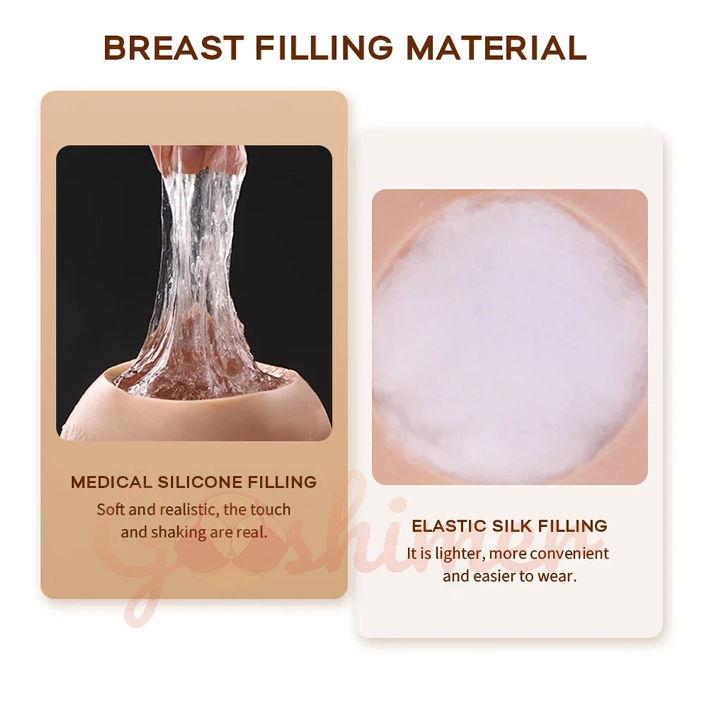 Brand :CDS Material: No Oil Food Grade Silicone Breast Filler: Medical Grade Liquid Silicone or Cotton Stretching: Can stretching 200% Feature: 1.Oil free silicone material -- keep dry and clean for a long time 2.Matte surface -- Close to real skin texture, non-reflective 3.Can use make up, easy to clean. 4.High elasticity -- easy to wear 5.Real touch - The silicone material is very close to the touch felling of human skin, you can knead and play to one's heart's content About Package: & 1 x Silicone Breast Form packed in a sealed box with no description to keep privacy & package size: 32cm x 24cm x 11cm Note: We would appreciate you contact us in advance if you encounter some problems about your order rather than issue dispute to ebay directly We are responsible and Brand : goshimer Material: No Oil Food Grade Silicone Breast Filler: Medical Grade Liquid Silicone or Cotton Stretching: Can stretching 200% Feature: 1.Oil free silicone material -- keep dry and clean for a long time 2.Matte surface -- Close to real skin texture, non-reflective 3.Can use make up, easy to clean. 4.High elasticity -- easy to wear 5.Real touch - The silicone material is very close to the touch felling of human skin, you can knead and play to one's heart's content About Package: & 1 x Silicone Breast Form packed in a sealed box with no description to keep privacy & package size: 32cm x 24cm x 11cm Note: We would appreciate you contact us in advance if you encounter some problems about your order rather than issue dispute to ebay directly We are responsible and honest seller , will spare no effort to help you resolve all problems Q1 How to wear the silicone breast ? &It maybe little tight to wear first time ,you can take bath ,use powder .Will be more and more adaptable to your body after used several times Q2 How to care the silicone breast ? & Clean them in lukewarm water with mild soap, air-dry or with towel gently; & Keep away from hot temperature, sunshine, sharp pointy things, washing machine, chemical material; & To avoid discoloration of other clothes, do not clean the products with other clothes; & This product is easy dyeing. Therefore, do not wear faded clothes or jewelry. Artificial dyeing is not refundable; Q3 How to judge the size is suitable for you? You can judge the size according to our detail information and pictures. While if you cannot decide yourself, please offer us the following information and we will give you professional advice: (1) Your chest circumference (2) Your height and weight (3) The Cup size you want to achieve (4) Neck circumference and waist circumference