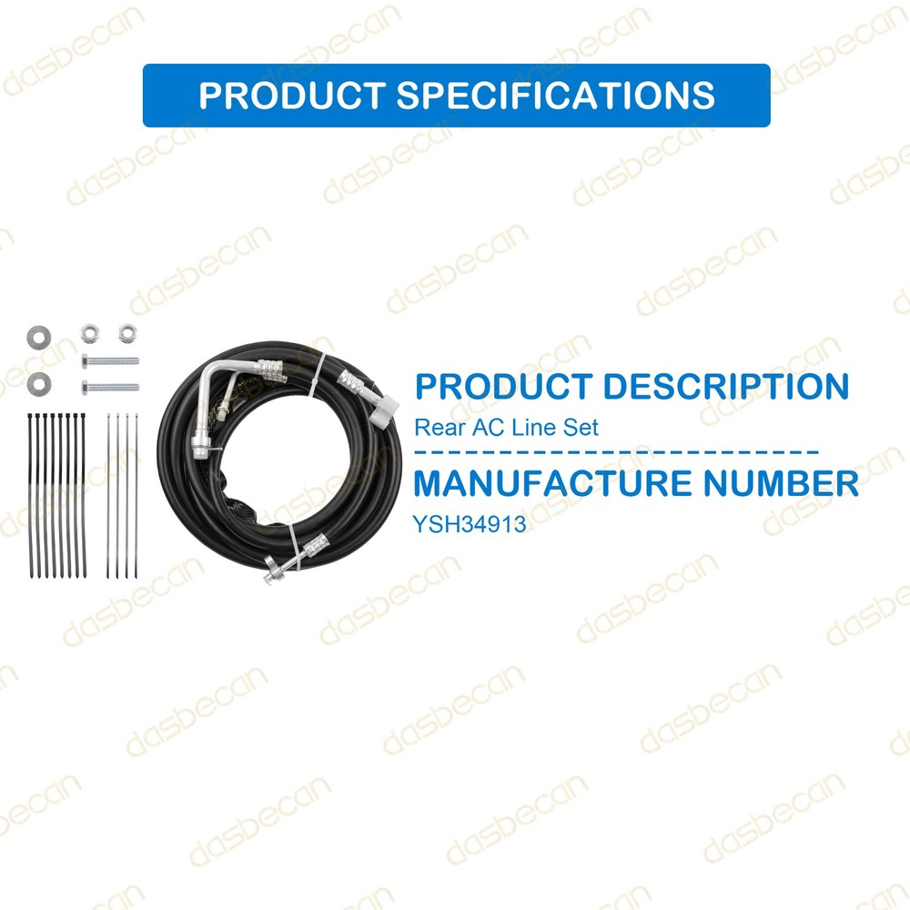 Features & details 【 Compatible With 】 If you are not sure, please provide vin for us. 2015-2020 Chevrolet Tahoe 2015-2020 GMC Yukon 2015-2020 Cadillac Escalade 【Replace OE Number】YSH34913 【 Description 】 Condition: 100% Brand New Fitment Type: Direct Replacement Type: Air Conditioning Line 【 Features 】 Function. Used to replace leaky and inferior original aluminum tubes. Our rear AC wiring kits allow you to replace rear AC wiring and restore service to your rear AC system for a fraction of the price of replacing factory aluminum AC wiring. Superior Quality. High quality aftermarket products. More durable rubber and metal copper and steel materials. High pressure A/C barrier hose for this kit. Exceeds OEM quality. This line kit is fully assembled and pressure tested before shipped. Easy Installation. Easy to install with direct fit block fittings. No need to remove original lines. Installation is a breeze compared to the factory aluminum lines. 【 Package Included 】 1X Rear AC Line Set Replacement Lines Kit This item doesn't come with manual installation. 【 Note 】 Please check the description or use the year/ make/ model check finder and replace part numbers to confirm the compatibility before purchasing. Professional installation is recommended. 【Service & Warranty】 Purchase from DASBECAN, enjoy 1 year no worries-warranty, whenever you met issue when installing or using, please contact us via eBay Message, and we will reply within 24 hours and help solve the problem. Customer Question & Answers Q1: Will This Part Fit My Vehicle? We list all the compatiblity, if your vehicle does not show up on the compatibility table at the top of our listings, welcome you to contact us for free consulation before purchasing a product. Q2: Does they come with warranty? All of our product comes with 1-year warranty, but some times you need to pay the shipping fee. Q3: How to use it? If you don't know how to install this accessory, welcome to contact us, we will provide you with a video guide. Payment Shipping Warranty & Service Returns/Exchanges Contact us Payment Most of the payment methods are available, such as Paypal, Payoneer, Credit Card. Within 1 day of receiving your payment, we will start processing your order. Shipping All Items Will Be Ship Within 1working Days, and We Will Ship out All Orders As Soon As Possible After Payment Verified, Please Allow up to 1-6 Business Days for Delivery. Why Choose the Us Stock? 1. Us Local Shipping, No Extra Customs Cost. 2. Fast Delivery: 1-6 Working Days Delivery. Warranty & Service If the item is installed or defective after 30 days , please check our warranty page. We offers an one-year warranty on all parts sold unless otherwise noted. We aim to provide the high quality auto parts and accessories, but some rare cases happened. We offer following options for warranty service: If the item fails after installation : You must provide your valid purchase record , with photos or videos proving the product's own fault via eBay messages, after which we will provide you with a replacement warranty service. Please note that this warranty only applies to automotive parts installed in full compliance with the installation instructions, as well as return requests for which photos and videos proving the product's own fault are provided to us. If we send you the wrong parts: You can promptly send us a message to inform us, and we will prioritize arranging a replacement. Meanwhile, we will provide a return label for you to send back the incorrectly shipped items. Shipping Damage. We use UPS Ground, Fedex and USPS First class to ship all items . Buyer should check the parcel condition before sign the signature . Please refuse to sign the parcel if you noticed something wrong , and get a shipping damaged report from carrier. We will send you a replacement at the same day once you provide the shipping damage report . We won’t cover any lost if buyer don’t check the parcel condition before the signature. This warranty does not cover any expenses incurred in the removal and / or re-installation of the item. Specifically, this warranty does not cover any expenses for time, rental, or other parts not purchased from us, or any labor. This warranty does not apply, and will be voided, if the item sold has been damaged by abuse, misuse, accident, neglect, or alteration, or if it has been repaired by anyone . Your warranty will be null and void if the item fails due to improper installation or use. If the item sold should prove defective in material or workmanship within the warranty period, please contact us immediately. Returns/Exchanges Please contact us via eBay messages between 9:30 a.m. and 6:00 p.m. PDT, (Monday to Friday) to obtain a return label with a return number. Without a Return Authorization Number, we will not be able to identify your return request. All returns must be done within 30 days after receiving the package. Parts must be new and unused in the original condition : including box, packaging and all other accessories,or we will charge you a partial costs. Return requests initiated directly on the eBay platform may not be processed promptly due to delays in eBay's procedural timeline. We highly recommend that you contact us first to receive priority processing. If you receive an item that is incorrect, damaged, defective, or not as described, please contact us and provide relevant evidence (such as photos, videos, or other valid proof of the issue). We will cover the associated costs and arrange for a partial refund, full refund, or replacement. Contact us If you encounter any problems during purchase or use, please contact us via eBay message directly. On Feb 2, 2026 at 21:56:35 PST, seller added the following information: