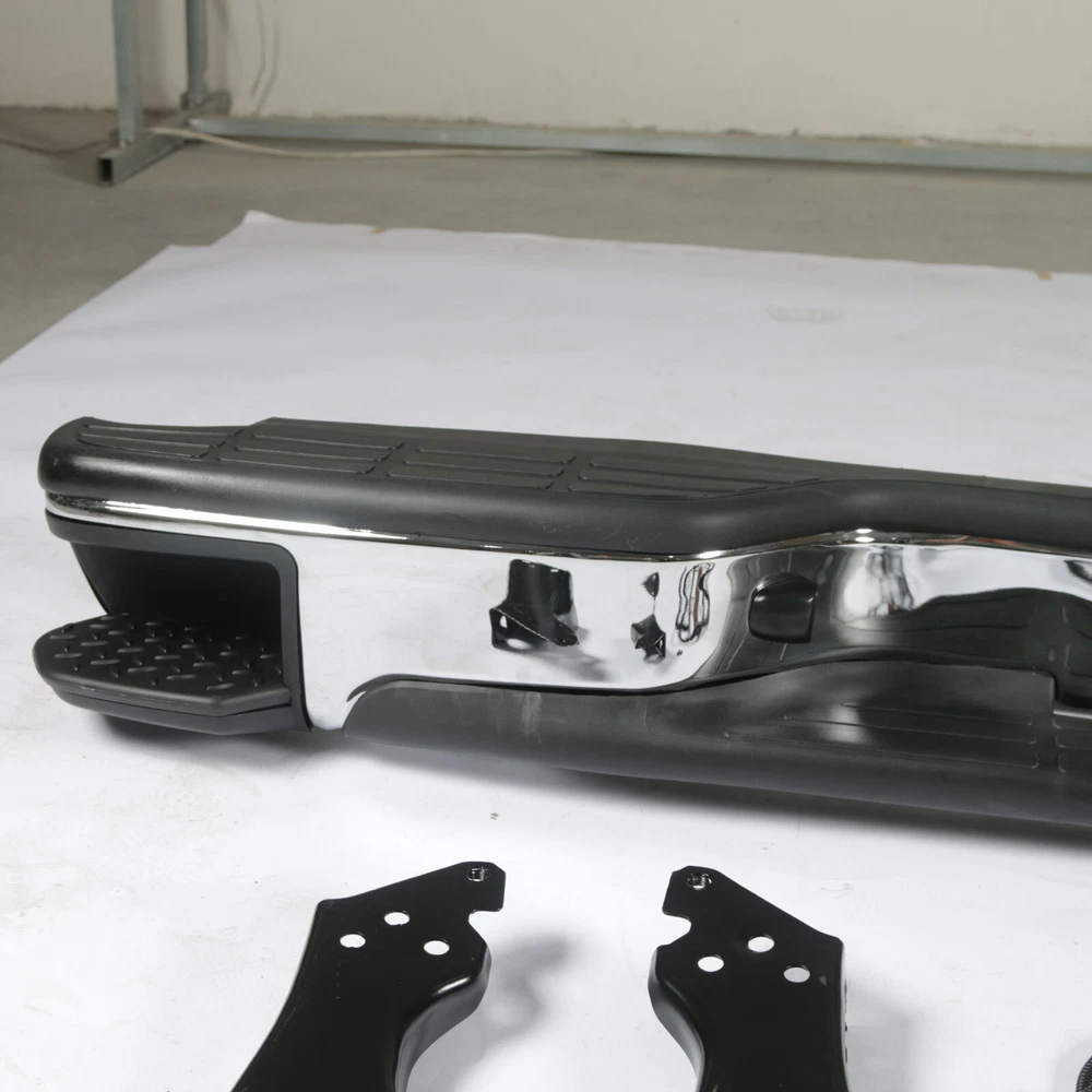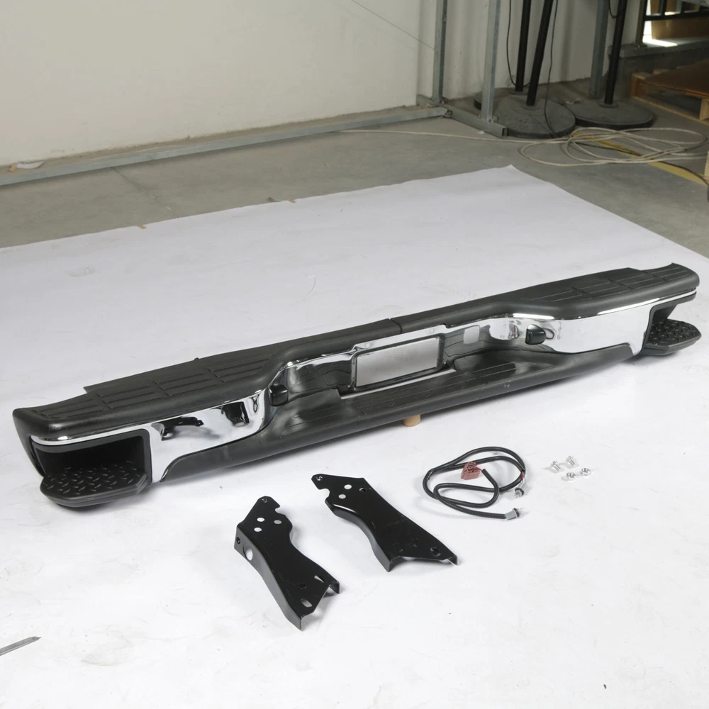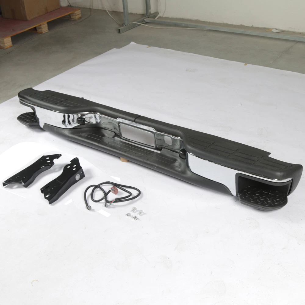 Feature Type:Rear Bumper w/Corner Steps Color:Black&Silver Material:Steel Surface Finish:Chrome Installation Directly replace the old bumper,no modification Professional installation is highly recommended. Fitment For 1999-2006 Chevy Silverado GMC Sierra 1500 07 Classic Note Use your own bolts Only Fit Fleetside models Don't Fit Stepside models Package Includes 1 Rear Bumper 2 Brackets 2 License Plate Lights On Jul 9, 2024 at 09:48:36 PDT, seller added the following information: On Jul 10, 2024 at 06:39:53 PDT, seller added the following information: On Jul 22, 2024 at 04:52:06 PDT, seller added the following information: On Nov 19, 2024 at 22:53:48 PST, seller added the following information: On Nov 20, 2024 at 11:41:12 PST, seller added the following information: