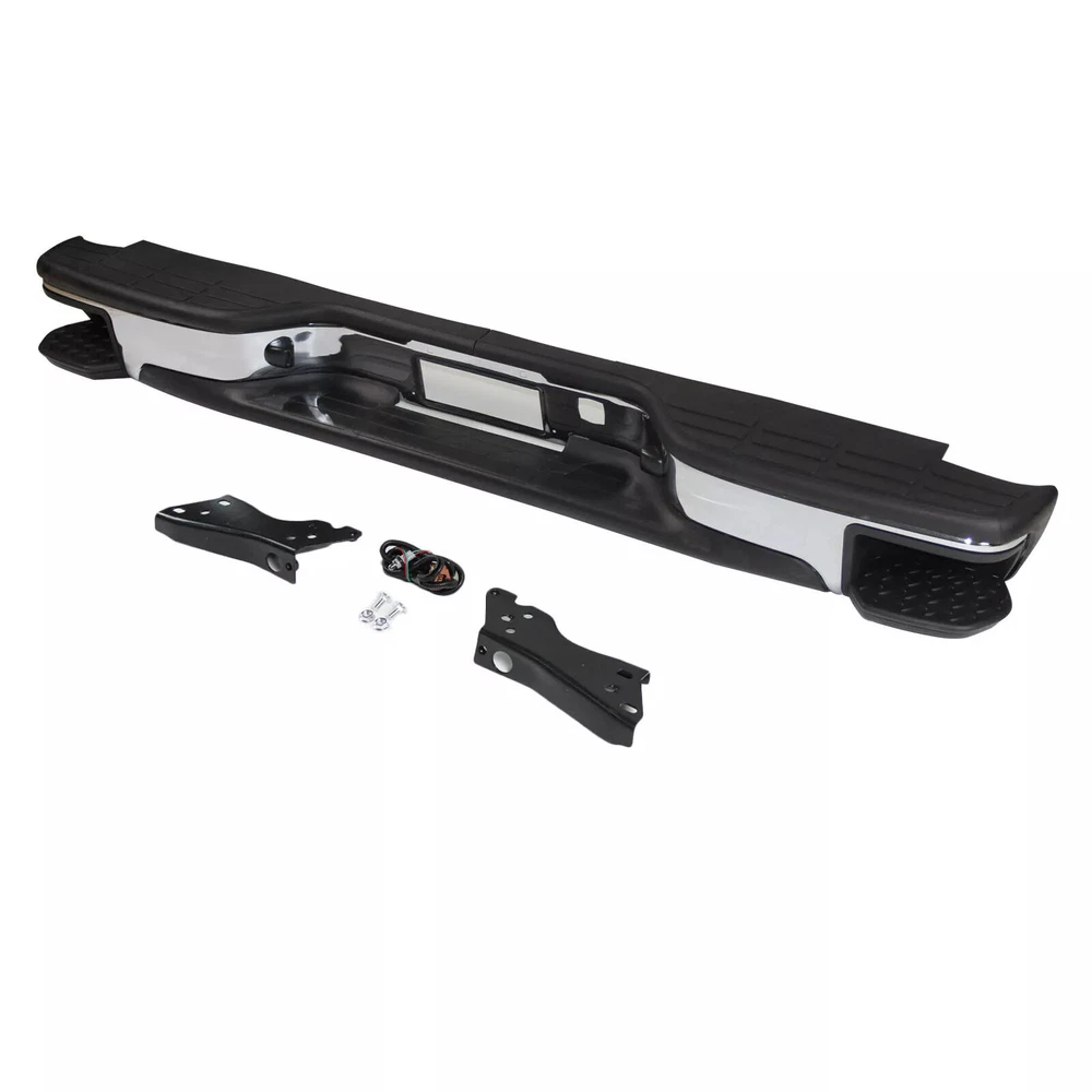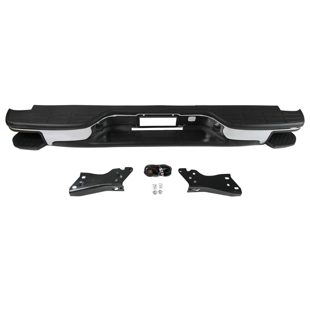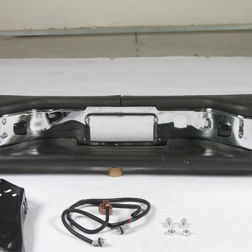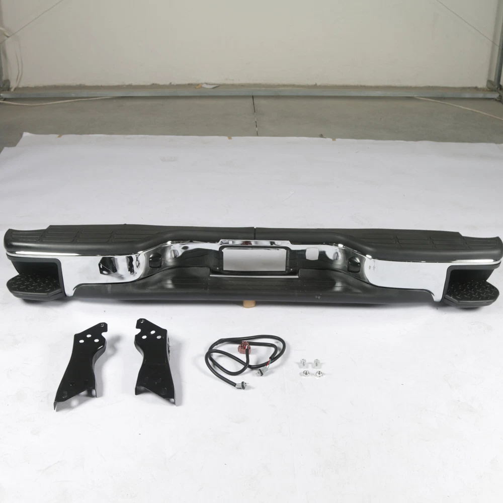 Feature Type:Rear Bumper w/Corner Steps Color:Black&Silver Material:Steel Surface Finish:Chrome Installation Directly replace the old bumper,no modification Professional installation is highly recommended. Fitment For 1999-2006 Chevy Silverado GMC Sierra 1500 07 Classic Note Use your own bolts Only Fit Fleetside models Don't Fit Stepside models Package Includes 1 Rear Bumper 2 Brackets 2 License Plate Lights On Jul 9, 2024 at 09:48:36 PDT, seller added the following information: On Jul 10, 2024 at 06:39:53 PDT, seller added the following information: On Jul 22, 2024 at 04:52:06 PDT, seller added the following information: On Nov 19, 2024 at 22:53:48 PST, seller added the following information: On Nov 20, 2024 at 11:41:12 PST, seller added the following information: