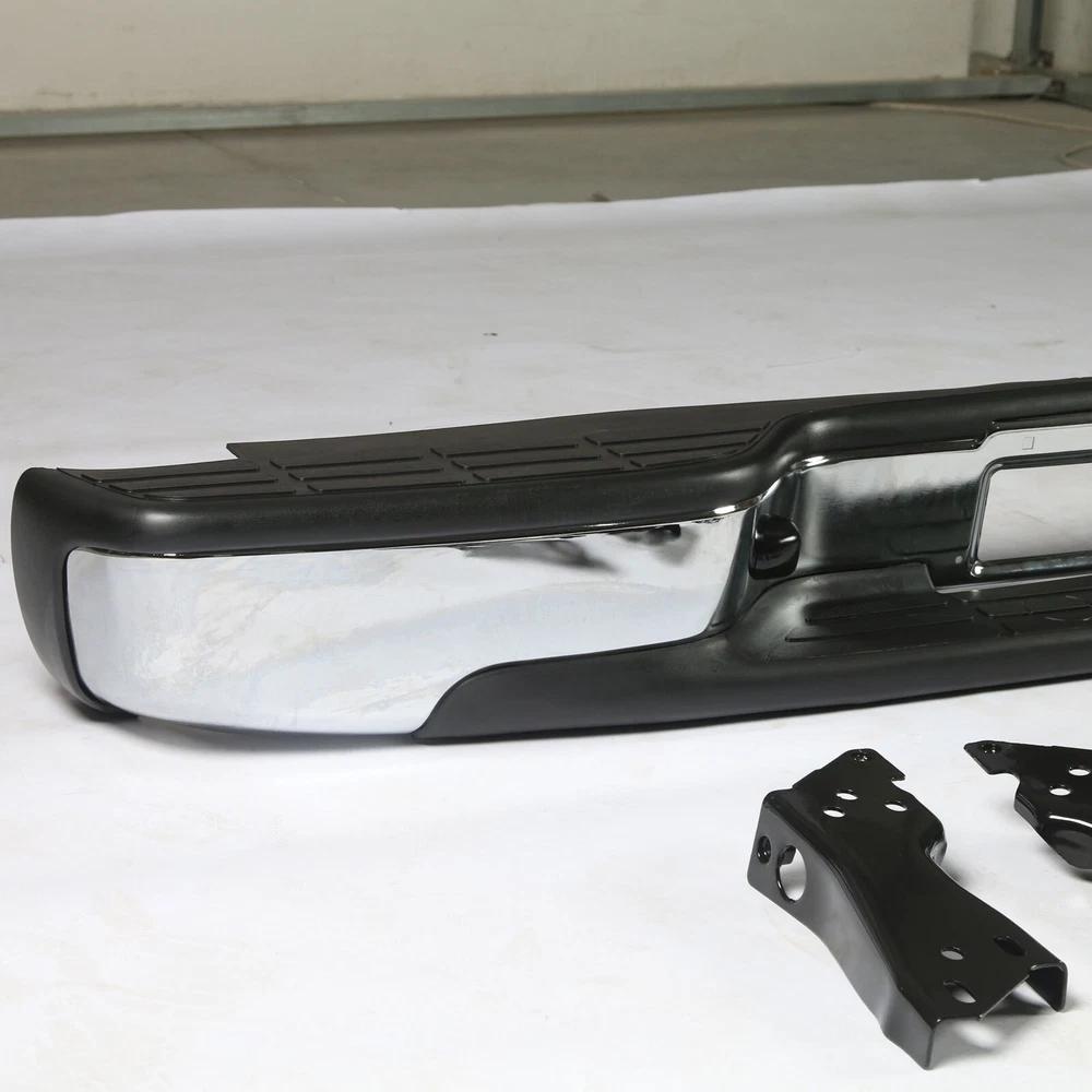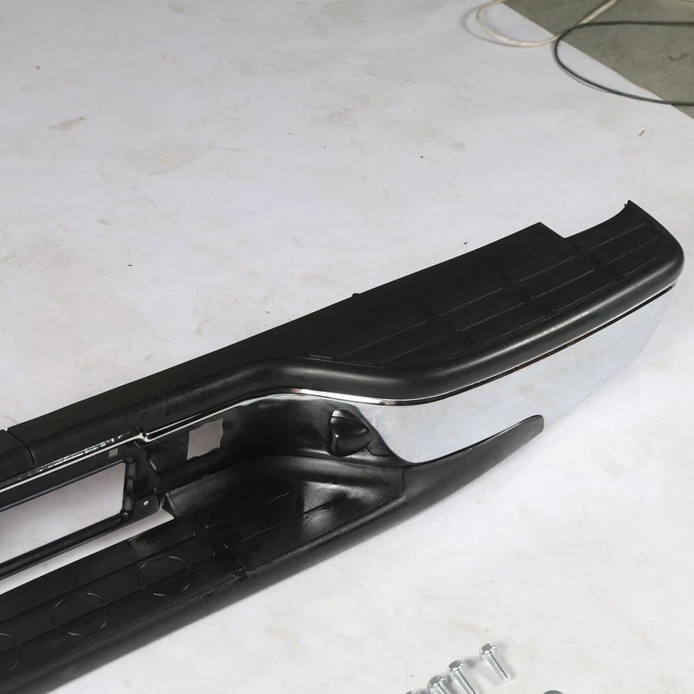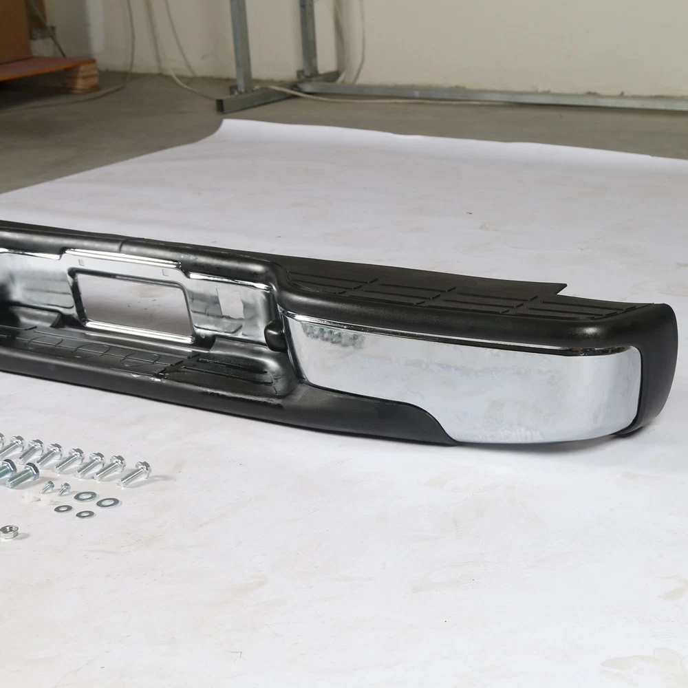 Feature Condition: 100% Brand New Color: Chrome Bumper + Black Step Pad Material: Steel + ABS Plastic Placement on Vehicle: Rear Comes with a Complete Set of Step Pads Requires no Modification or Drilling Upgrade and replace your standard or worn rear bumper with a new one. Professional Installation is Highly Recommended Installation Instruction is NOT Included Fits For 1999-2006 Chevrolet Silverado 1500 For 2007 Chevrolet Silverado 1500 Classic For 1999-2004 Chevrolet Silverado 2500 For 1999-2006 GMC Sierra 1500 For 2007 GMC Sierra 1500 Classic For 1999-2004 GMC Sierra 2500 Fits Models without Parking Sensor Holes Package Include 1×Rear Bumper 1 Set of License Plate Lamp Wiring Harness 2×License Plate Lamps Some bolts and screws On Jul 9, 2024 at 09:48:42 PDT, seller added the following information: On Jul 11, 2024 at 17:41:38 PDT, seller added the following information: On Jul 24, 2024 at 08:58:26 PDT, seller added the following information: On Nov 20, 2024 at 13:46:47 PST, seller added the following information: On Dec 11, 2024 at 17:48:42 PST, seller added the following information: On Dec 11, 2024 at 20:49:49 PST, seller added the following information: