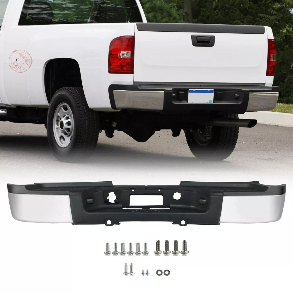 Fitment: For 2011-2014 Chevrolet Silverado 2500 HD 3500 HD For 2011-2014 GMC Sierra 2500 HD 3500 HD For Models Without Park Assist Sensors Details Placement on Vehicle:Rear Color:Chrome Material:Steel Package Includes: 1*Rear Bumper Assembly