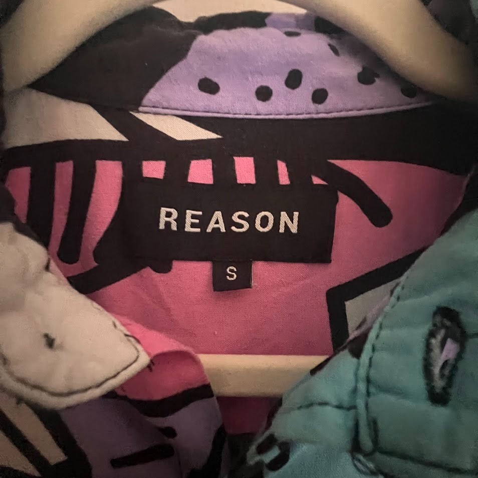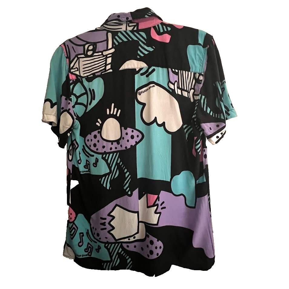 Bold and eye-catching Reason men’s short sleeve button-up shirt featuring a vibrant abstract graphic print in pink, teal, purple, black, and white. Made from 100% viscose , this lightweight woven shirt has a smooth drape and breathable feel, perfect for warm weather or layering. Designed with a classic collar, full button-front closure, and chest pocket. A standout statement piece with a retro-art, streetwear vibe — ideal for festivals, casual wear, or creative styling. ✨ Details: Brand: Reason Department: Men Size: Men’s Small Color: Multicolor Style: Short sleeve button-up shirt Abstract / graphic all-over print Chest pocket Lightweight woven fabric 🧵 Fabric & Care: 100% Viscose Colors wash separately Line dry Iron on medium heat Made in China