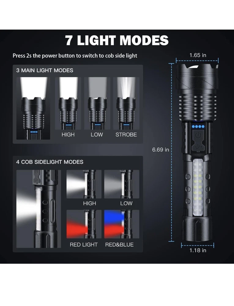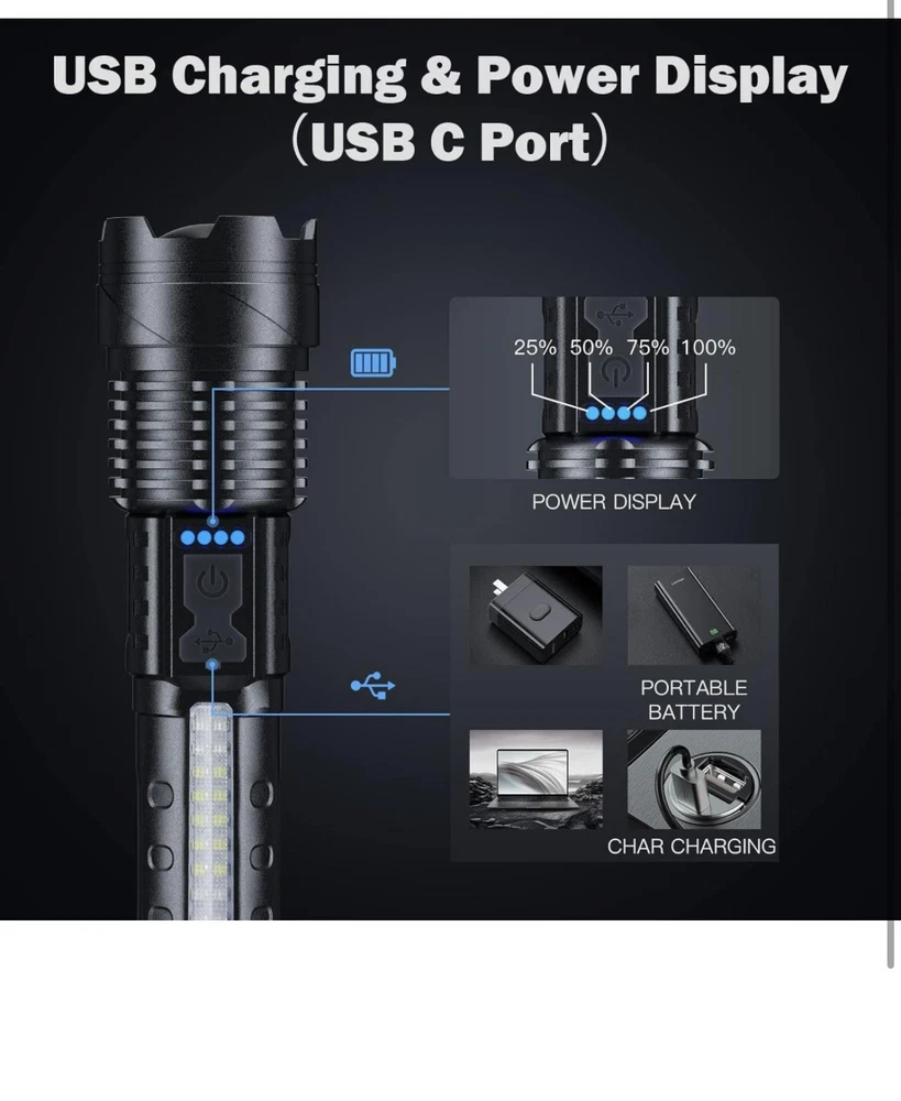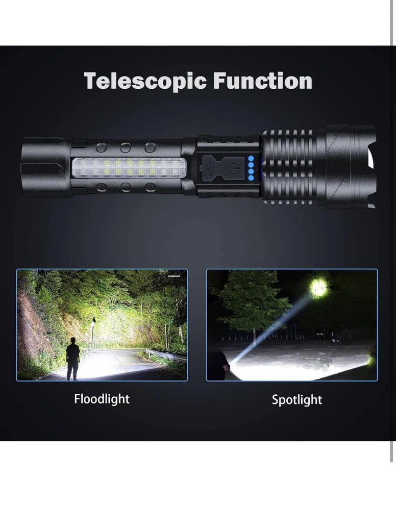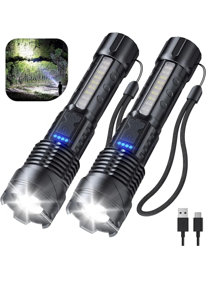 Rechargeable 2 Pack, 900000 Lumen Super Bright Led Flashlights IPX6 Waterproof。 物品状况为New。 运送服务为USPS Ground Advantage。