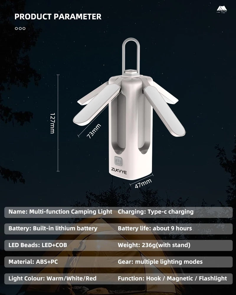 ZUKVYE Rechargeable LED Camping Lantern - Waterproof Tent Light with 8 Light Modes, Camping Essentials, Portable Lantern Flashlight for Camping, Hurricane, Emergency, Hiking, Fishing Foldable & Portable Design: Our ZUKVYE camping lantern is lightweight and compact, weighing only 0.52lb. It can be easily folded at a 90-degree angle and provides 360-degree illumination, making it perfect for camping and outdoor activities. Versatile Light Modes: With 8 different light modes, our camping lantern offers a variety of options to suit your needs. Whether you need a warm white light for a cozy atmosphere or a bright flashlight mode for outdoor adventures, our lantern has got you covered. Sturdy Hook & Waterproof: The flexible and stable rubber hook allows you to hang our camping lantern anywhere without worry, even in extreme weather conditions. With its IPX4 waterproof rating, it can withstand rain and snow, ensuring reliable performance. High-capacity Battery & Phone Charger: Equipped with a 4000mAh rechargeable battery, our camping lantern provides up to 10-18 hours of continuous lighting. Additionally, it can also charge your phone via the USB-A port, making it a convenient companion for outdoor activities. Guaranteed Satisfaction & Lifetime Support: We offer a diverse 2 sets camping lantern package that includes a USB-C cable, lifetime warranty, and professional customer service. We are committed to providing top-quality outdoor lighting solutions and addressing any concerns you may have. Illuminate your adventures with confidence * Order Cancellation Policy ** You can return a product for up to 30 days from the date you purchased it. 1. The seller reserves the right to cancel the special case only due to eBay cancellation fee. 2. The decision of seller is the final. 3. The seller will respond to the cancellation request within 2 business days. Please wait for the result of cancellation. 4. In case the cancellation is not completed by some reasons, the buyer can follow the options below to get the refund. 4.1 The buyer can reject the item when it arrives. 4.2 The buyer can send the item back to the seller within 30 days If the buyer receives item (USA Shipment ONLY). The seller will provide the FREE return label to the buyer when the buyer opens " Return Item" case on eBay by using the reason as "Change my mind" ONLY. 5. When buyer has placed the order. The order will be processed and completed by automatic warehouse system within 5 minutes. In case that buyer sends the cancellation request after 5 minutes of placing the order, the request will be rejected. **Sending direct message to cancel the order is not allowed for every case.* Return Policy For the return case - If buyer would like to return the items for refund or replacement, please CONTACT SELLER to receive the free return label from seller. The refund or replacement will be processed with the tracking number of return label which is provided by seller only. The other ways of return which are not approved by seller will not be processed for the refund or replacement. SHIPPING Domestic Buyers - We ship within 3 business days of payment, usually sooner - We offer FREE shipping on all orders! - We only ship to the lower 48 states, no APO/FPO addresses or PO Boxes allowed - We have confidence in our products, but if you are not fully satisfied please contact us within 30 days of purchase and you will get full refund. International buyers – please note: Import duties, taxes, and charges aren't included in the item price or postage cost. These charges are the buyer's responsibility. - Please check with your country's customs office to determine what these additional costs will be prior to bidding or buying.