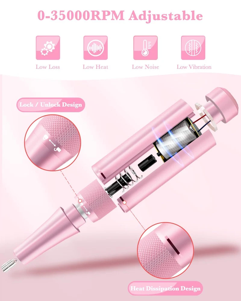 Product Description Rechargeable Nail Drill 35000 Rpm, Portable Cordless Electric Nail File Machine For Acrylic Nails Gel Polishing, Removing, With Nail Drill Bits Kit For Manicure Pedicure, Pink-Blue 【35000 Rpm High-Speed Bearings】: Professional M50 Series Nail Drill Is Equipped With High-Quality Bearings, Which Enables It To Work Smoothly At A High And Adjustable Speed (0-35000 Rpm). It Is An Ideal Nail File For Both Professional Technicians In Salons And Newbies Who Start Their Journey To A Manicure And Pedicure At Home. 【Top Quality Torque】: E-File Comes With Superior Torque To Prevent It From Stopping Occasionally When Applying Appropriate Pressure. Awesome For Nail Buffing, Shaping Various Nails, And Smoothing Calluses Or Hardened Skin On Your Hands And Feet. 【10H Battery Life & Portable & Rechargeable】: Our Cordless Nail Drill Has A Large-Capacity Battery(3000 Mah) For Up To 10 Hours Continuously Working, Fully Charged For About 2.5 Hours. The Portable Size(6.05*2.75*0.95 Inch) And Light Weight Of This Electric Nail File Make It Compact To Pack Into Your Handbag For Carrying Out Anywhere. 【Low Noise & Low Heat & Low Vibration】: The Handle Of This Electric Nail Drill Is Made Of High-Quality Aluminum Alloy. High-Quality Motors And A Unique Ventilation Hole Design Ensure Excellent Heat Dissipation Performance, No Risk Of Overheating, And Durability. Low Heat And Low Vibration Will Not Make Your Hand Numb After A Long Time Of Use. It Works Very Quietly And Smoothly Without Disturbing The People Around You. 【Easy To Handle】: Adjust The Speed From 0 To 35000 Rpm By Turning The Wheel According To Your Need, And Switch The Direction Of Rotation By Pressing The "F/R" Button On The Side, And The Lcd Screen Displays Real-Time "Battery/Speed/Direction". The Lightweight And Ergonomic Design Of The Handle Makes It Easy To Hold. So You Won'T Feel Uncomfortable Even If You Use It For A Long Time. About Us We are a reputable seller with many years of experience selling on eBay. Our goal is to provide high-quality products and excellent customer service. Shipping Items will be shipped within 1-3 business days when we received payment. (Orders are not processed on weekends & holidays) Tracking information will be sent once item is shipped. Delivery time depends on destination and other factors Item is shipped to ebay address. Leaving correct address can minimize delay. For international shipping and shipping to Guam, Hawaii and Alaska, Please contact us before placing the order. International buyers please note: Import duties, taxes and charges are not included in the item price or shipping charges. These charges are buyer’s responsibility. We will try our best to reduce the risk of the custom duties. Local pick-up is unavailable at the moment. Contact Us We reply any email messages within 1 business / working days(off-duty at weekend). If you do not get a response from us, then please check your junk or spam mailbox. Our Business hours: Mon-Fri 9:00-18:00, UTC/GMT +8 hours. Please contact us either by clicking "contact seller" in the "purchase history" section or simply click "ask a question" at the bottom of this page. If you are unsatisfied with our item or service, please contact us before leaving any feedback. We are committed to resolve all issues in a friendly and satisfactory manner.