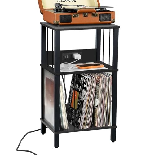 Return Policy Fast Delivery Trusted seller Record Player Stand with Charging Station, 3-Tier Wooden End Table, Record Shelf for Up to 100 Albums, Modern Black Finish, 15.35 x 11.81 x 27.17 inches, Living Room, Office Side Table Product Description Record Player Stand with Charging Station: The record player table has 1 AC outlet and 2 USB ports to simultaneously charge your record player, cell phone and other electronic devices. Plenty of Display Space: The record player table has 3 tiers of space, the third tier is divided into sections for storing records, magazines, books and file , and can hold up to 100+ records, the second tier with a guard rail and the third tier with a clear guard provide you with plenty of storage space while preventing items from falling out. More Use Scenario: This small side table can be used as a record player stand, or as a side table for the living room, office, retro design can be perfectly integrated into a variety of decorative styles, adding beauty to your living environment. Simple yet Smooth: The Vinyl Storage Cabinet has individually numbered parts and instructions that make the assembly process so simple that it can be assembled in minutes without help. Complete Service: You will receive the record player stand, installation instructions and installation tools, in the process of assembly and use of any problem you can contact us at any time, we are the first time to help you solve the problem, the moment you receive the product is the beginning of our service. Shipping Returns Payment Shipping Shipping is FREE to all addresses other than APO/PO boxes in the lower 48 states. All our stock ships from US-based warehouses. Shipped via USPS or UPS (depending on location and package weight) Unless stated otherwise, all orders will ship within 24-72 hours of your payment being processed. Check our feedback to see the great reviews of FAST shipping we offer. Returns Seller does not accept returns Payment We currently accept payment via eBay managed payments only. Once payment is cleared, we will dispatch your shipment within 1-3 business days. Please refer to the "Shipping" tab for more information regarding shipping speed to your destination.