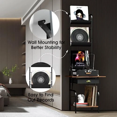 Menu 1. We require immediate payment. 2. We currently accept payment via eBay managed payments only. 3. Once payment is cleared, we will dispatch your shipment within 1-3 business days. Please refer to the "Shipping" tab for more information regarding shipping speed to your destination. Record Player Stand with Vinyl Storage, Turntable Stand with Vinyl Record Holder Display Shelf, Record Player Table with 3-Tier Vinyl Storage up to 200 Albums, Record Cabinet Organizer Rack Product description Extra Large Countertop:Equipped with 19.7"x15.4" large countertop, our record table stand roomy enough to hold almost any sizes of turntables. The table for record player is made of sturdy thicken wooden boards and corrosion-resistant metal frames which ensure that the table can be used for a long time Large Capacity For Vinyls Record: If you enjoy collecting different record vinyls, this would be an ideal record player table with album storage. This all-in-one record player stand with vinyl storage providing ample storage space for your record players, records, speakers, audio equipment, books, magazines and more. The record holder can hold up to 200 records Vertical Record Display Shelf: The record storage holder features 3-tier oxford fabric slot which offers sufficient space to store your records in an organized and display your vinyls visible. It also allows it easy to browse and select your records Vintage Style for Your Home Decor: The vintage-inspired design and elegant exterior of the vinyl record stand elevate the style of any room. A record player stand enhances your decor, it exudes a mid century modern aesthetic, making it suitable for any style of home decoration Optimum Storage for Compact Spaces:This vinyl record player stand is stylishly in the corner, alongside your desk, or against any wall. 57.4" H *13.9" W*11.8"L overall, very convenient for you to get the record without crouching down. Vertical design it gives it plenty of storage space Tips:To enhance the stability of the vinyl player stand, we specially designed to mount to the wall on the top PLEASE MESSAGE US IF YOU HAVE ANY OTHER QUESTIONS, AND MANY THANKS FOR READING ALL OF THIS. Copyright ©#. All Rights Reserved.