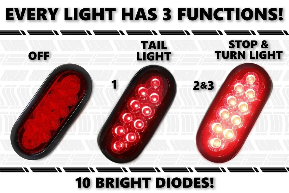 Our company formally established in 2007. Our manufacturing and business is including luxury brand such as BMW, Mercedes Benz and etc auto part. Our collection of spare parts include but are not limited to: Performance Body Kits Headlamps, Tail Lamps and Fog Lamps Cooling Systems (Radiators, Condensers) Bumpers and Radiator Grilles Fenders and Fender Flares Add to watchlist, and get more promotion information Product details: Functional Attention: it works only with high brightness and low brightness after you install used for Brake Lights ; Convert your old incandescent lights to more modern LEDs; LEDs are brighter and light faster, draw less current and generate less heat than incandescents. 100% brand new and high quality. Each equipped with 10pcs super bright piranha LED on each light, provide maximum visibility and safety. High quality material with ultrasonic welding process, ensure waterproof + shock proof + dust proof seal. Light Source:10pcs F3 Piranha LED High Brightness Material: PC Lens + ABS Housing Light Color : Red Light Dimension : 7.5" x 3.3"x 1.1" Fixing holes space : 7" x 2.7 Wire Length: Approx. 11" Voltage : 12V DC Wiring: Black=Negative, Red=Positive Tail Light, White=Positive Brake Light Application: Trucks, trailers, tractors, semi-trailer, boat trailer, horse trailer, travel trailer, dump Truck, special vehicle, etc. Package Includes: 2 x LED Trailer Lights 2 x Oval Rubber Grommet 2 x 3-pin water tight plug with wires