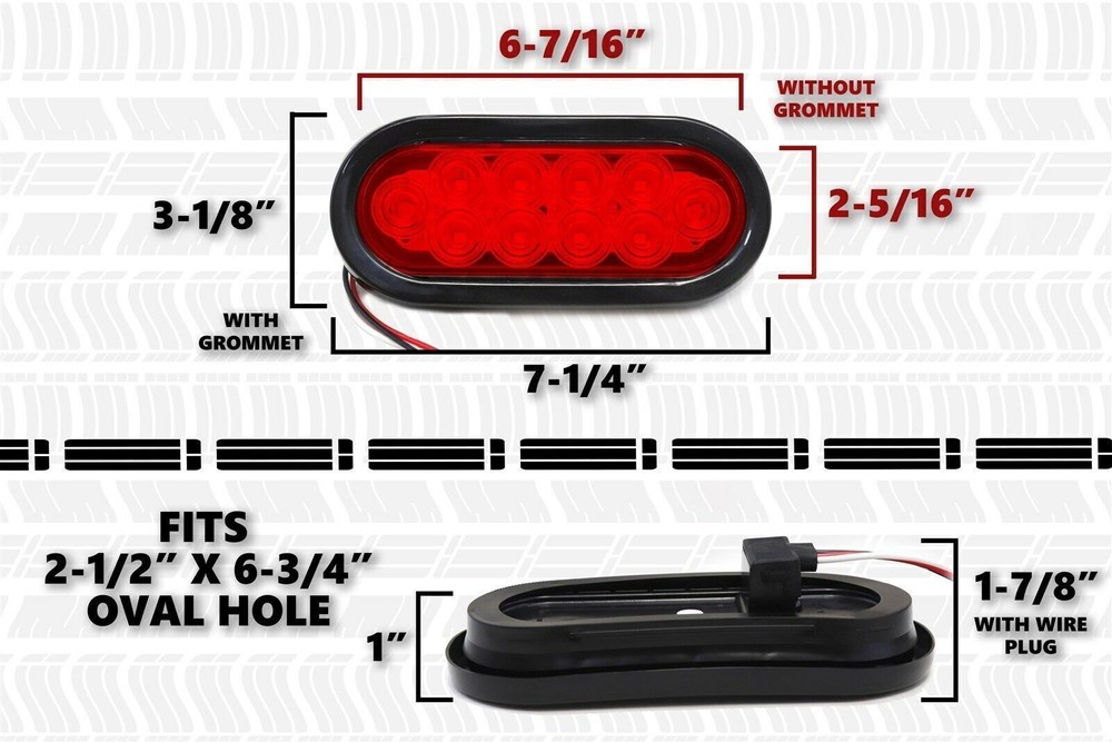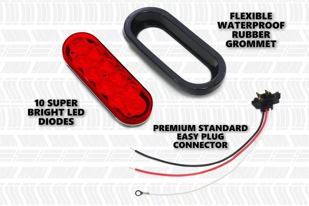Our company formally established in 2007. Our manufacturing and business is including luxury brand such as BMW, Mercedes Benz and etc auto part. Our collection of spare parts include but are not limited to: Performance Body Kits Headlamps, Tail Lamps and Fog Lamps Cooling Systems (Radiators, Condensers) Bumpers and Radiator Grilles Fenders and Fender Flares Add to watchlist, and get more promotion information Product details: Functional Attention: it works only with high brightness and low brightness after you install used for Brake Lights ; Convert your old incandescent lights to more modern LEDs; LEDs are brighter and light faster, draw less current and generate less heat than incandescents. 100% brand new and high quality. Each equipped with 10pcs super bright piranha LED on each light, provide maximum visibility and safety. High quality material with ultrasonic welding process, ensure waterproof + shock proof + dust proof seal. Light Source:10pcs F3 Piranha LED High Brightness Material: PC Lens + ABS Housing Light Color : Red Light Dimension : 7.5" x 3.3"x 1.1" Fixing holes space : 7" x 2.7 Wire Length: Approx. 11" Voltage : 12V DC Wiring: Black=Negative, Red=Positive Tail Light, White=Positive Brake Light Application: Trucks, trailers, tractors, semi-trailer, boat trailer, horse trailer, travel trailer, dump Truck, special vehicle, etc. Package Includes: 2 x LED Trailer Lights 2 x Oval Rubber Grommet 2 x 3-pin water tight plug with wires