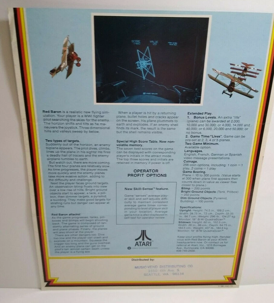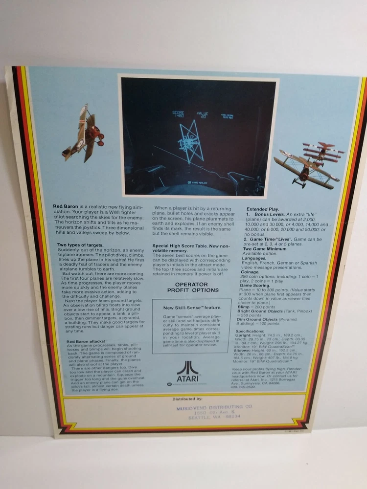 More pinball, jukebox, slot machine, and arcade game items for sale in our store. Original paper promo sales flyer. Single page two sided artwork sheet. Has folds, wrinkles, creases, and stamped address on back. See photos. Flyers are paper promotional advertising sheets made for coin operated amusement arcade games. Also called a circular, brochure, pamphlet, or flier. All are single sheets unless noted otherwise. If there is artwork on the back side it will be shown. Size is 8.5" X 11". Perfect for framing. Makes great wall art for the man cave or a unique gift idea. Sheet protector included with each flyer sold. Orders are shipped with care. SHIPPING Buyer pays shipping and handling. Bundle and save. Additional items will be discounted when cart is used. Add all items to cart and make a single payment to get promo offers and discounts if offered. ABOUT US Seller of vintage collectibles, advertising, artwork, original pinball flyers, video arcade flyers, pinball machine translites, game manuals, score cards, magazines, antique Halloween and holiday postcards, Christmas items, super hero memorabilia, horror themed art. Check our feedback. INTERNATIONAL BUYERS ONLY Import fees/taxes are the buyers responsibility if applicable. These fees are from your countries customs department. Value will be disclosed on customs form. Items can not be marked as gift.