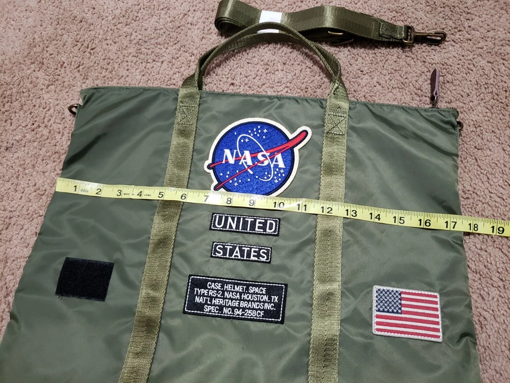 Up for sale is a Red Canoe USA NASA Case Helmet Space Green Nylon Shoulder Tote Bag 94-258CF. Bag is in good used condition - strap has never been used. Bag has only been used a couple times. No stains, tears, rips or pulls. Zipper closure with interior zipper pocket. Cool looking bag that was around $150+ new! No smells. Ready to use! Comes from a smoke and pet free home. Please view pictures for more details as they are part of the description. Please ask any questions or requests for pics prior to 24 hours of auction ending to ensure a prompt response. Winning bidder must pay for item within 72 hours after winning. -If the item for sale is a shirt, shoe, clothing item or other item where the pictured/listed size is the manufacturer's label. We are not responsible for actual sizing of item. -Item will be shipped with tracking only! -No insurance will be added - If you wish to add that on after winning auction, please contact us for a revised invoice. -Item will be shipped within 48 business hours after item has been paid for. There are always unforeseen delays in business, so there may be a package or two that could be delayed a couple days. -Please keep track of your purchase! Any item that has been marked as "Returned To Sender" / "RTS", "Undeliverable" or "Unknown Address" / "Insufficient Address" is the buyers fault. If an item meets these conditions and there is no response from the buyer within 30 days of returned date, buyer forfeits transaction, costs and fees. -Any item that is determined misrepresented and not as described can be returned - BUYER AGREES TO PAY FOR RETURN SHIPPING. Item must be returned and postmarked within 14 days of receipt. -Items with "as pictured" or "as is" in description will be sold on grounds "what you see is what you get". In many of these cases, I don't have a way of testing the item and the buyer must understand that the item may or may not need repair. -Winning bidder / buyer agrees to these terms and conditions. -Shipping prices have risen as of July 9, 2023. WE ONLY SHIP TO 48 CONTINENTAL STATES!!! Please bid with confidence! No Reserve! Happy Bidding! Please DO NOT message us on a "Buy It Now" listing if we will take a lower asking price. The listing is a "Buy It Now" and not a "Best Offer" listing. Any messages regarding a person trying to haggle a price will be ignored. If you are interested in the item and think it's priced too high, please "watch" the item, as we will drop prices every so often if the listing does not sell. PLEASE DON'T LEAVE NEGATIVE OR NEUTRAL FEEDBACK! WE STRIVE TO KEEP OUR BUYERS HAPPY! IF THERE IS AN ISSUE WITH YOUR PURCHASE, PLEASE CONTACT US BEFORE LEAVING NEGATIVE OR NEUTRAL FEEDBACK! POSITIVE FEEDBACK IS ALWAYS APPRECIATED!
