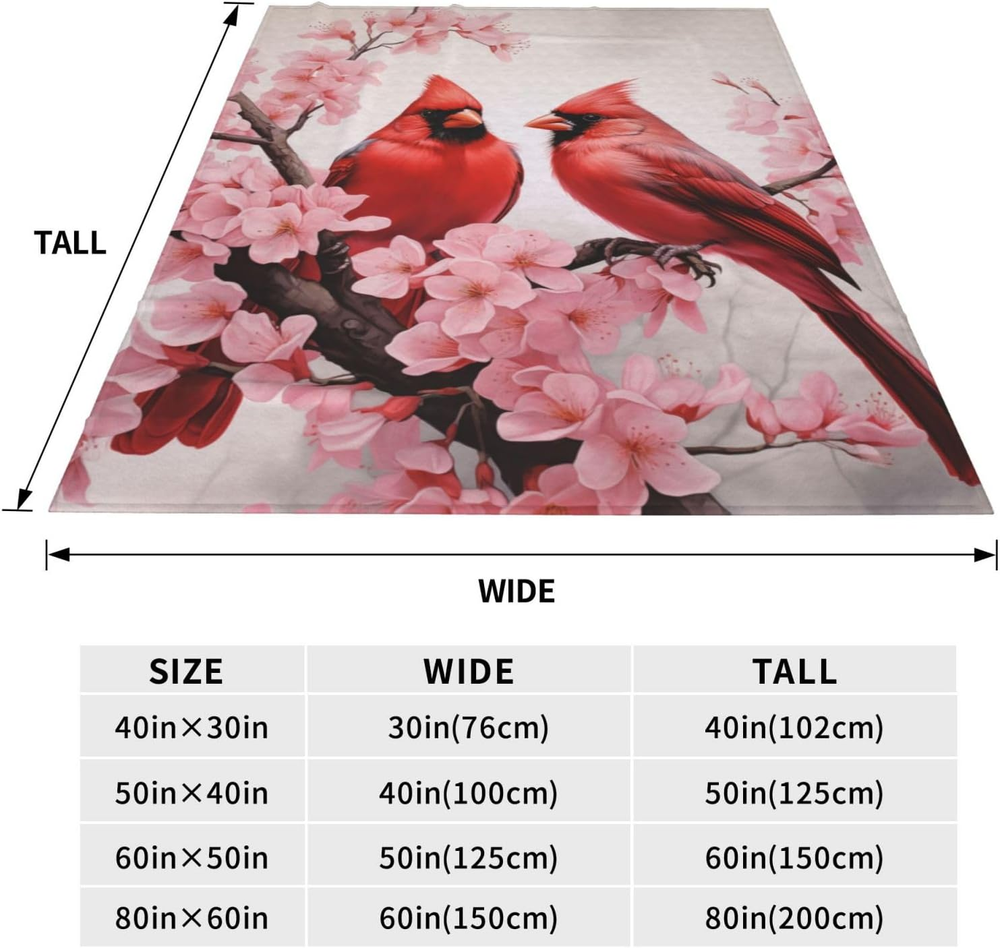 Quality Material: Cardinal blanket is made of high quality microfibre flannel material. Soft and fluffy, breathable and durable, the blanket keeps you warm without feeling bulky, bringing you a calm and comfortable sleeping environment. Multi-Purpose: Perfect for snuggling up on the sofa, in bed or watching TV in a cold cinema, cozy naps at work, watching TV at home, outdoors at the beach, picnics, and during happy travel times. Snuggling up in a cosy blanket will give you and your family a heavenly experience. Size Information: The blanket comes in three sizes: 40 X 50 inches, 50X60 inches, 60X80 inches. The three sizes are suitable for children and adults. Big enough to keep you warm, small enough for overall comfort and generous size makes it ideal for covering any bed, soft blanket is anti-pilling, wrinkle-free, hypoallergenic and non-shedding, providing you with long-lasting use. Best Gift: The novelty printed blanket is a perfect gift for birthday, Christmas, Hanukkah, Easter, Halloween or any holiday. It will fully express your love and surprise people. These blanket blankets will become an essential part of your daily life. Easy Care: The blankets are uniquely inked for maximum softness and warmth while clearly displaying the pattern and can be machine washed in cold water and dried quickly. Note: Do not bleach. The cardinal blanket is printed on one side and white on the other. Ideal for cosy comfort, this flannel blanket offers unrivalled warmth and comfort, whether you're lounging at home or camping outdoors. Soft and delicate, it feels great to the touch and moulds perfectly to your skin. This blanket is perfect for the necessities of life, watching TV, lounging on the sofa/bed, reading, sleeping, camping, playing games and more. These blankets are the perfect gift for all seasons!