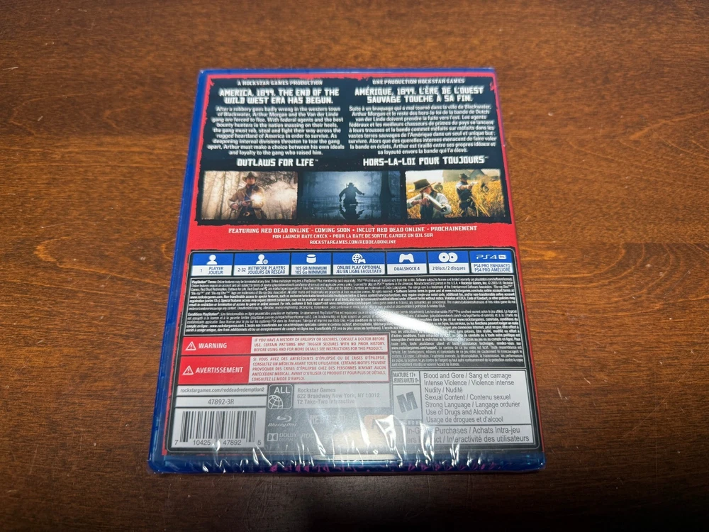 Experience the wild west like never before with Red Dead Redemption 2 for Sony PlayStation 4. This complete edition includes the manual, multiplayer, and online playability features that will keep you engaged for hours. Immerse yourself in a shooter, role-playing, and shoot 'em up genre that is rated M for mature audiences. This video game, released in 2018 by Sony, is compatible with NTSC-U/C (US/Canada) region codes and comes with a tested disc. Join the legendary tales of outlaw John Marston as he navigates through a gripping storyline in the frontier of the late 1800s. Get your hands on this epic game and make history in the west.