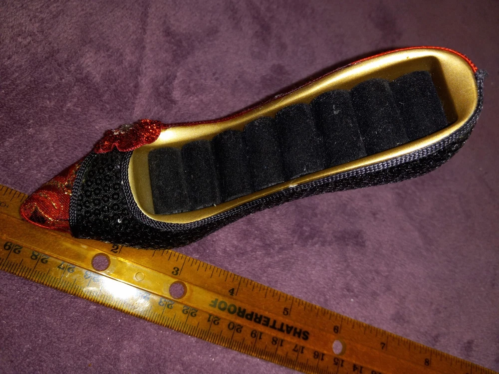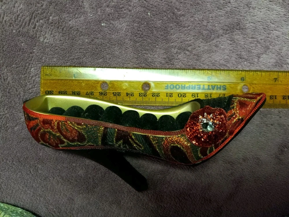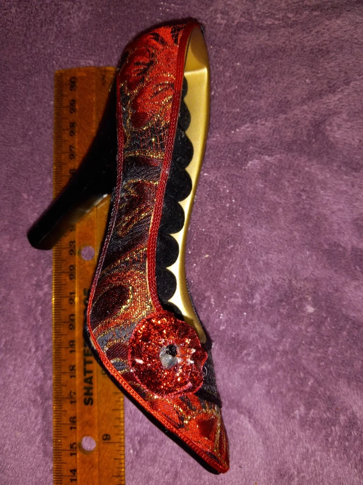 Elevate your jewelry organization with this chic Red Designed High Heeled Shoe Ring Holder. Crafted from quality ceramic, this organizer is not just functional but also a decorative piece that adds flair to your dresser or vanity. Its unique shoe shape comfortably holds up to 7 rings, keeping your precious pieces neatly displayed and within reach. Measuring 6 inches in length and 1.5 inches in width, this jewelry holder is an ideal size for showcasing your ring collection. The padded interior ensures your rings are secure, while the vibrant red color and glamorous design make it a must-have accessory for any fashion-conscious individual. Whether for personal use or as a gift, this jewelry organizer blends style with practicality.
