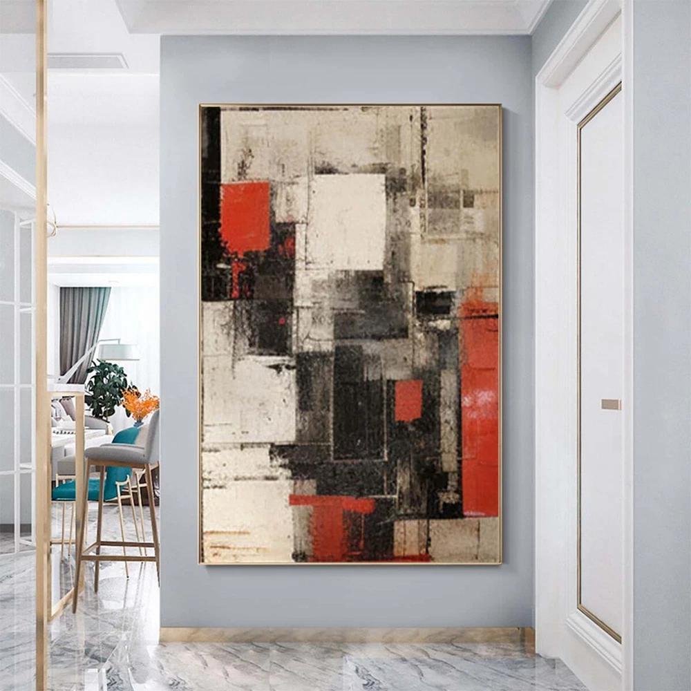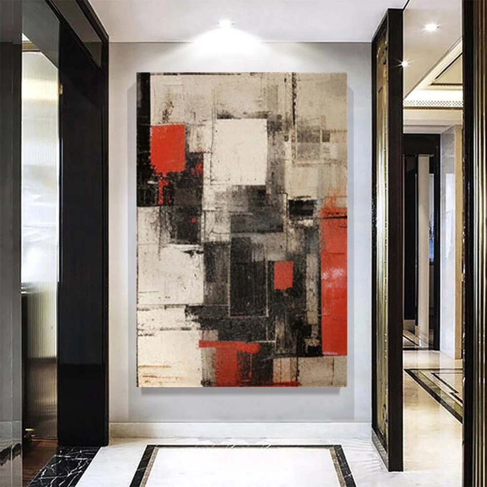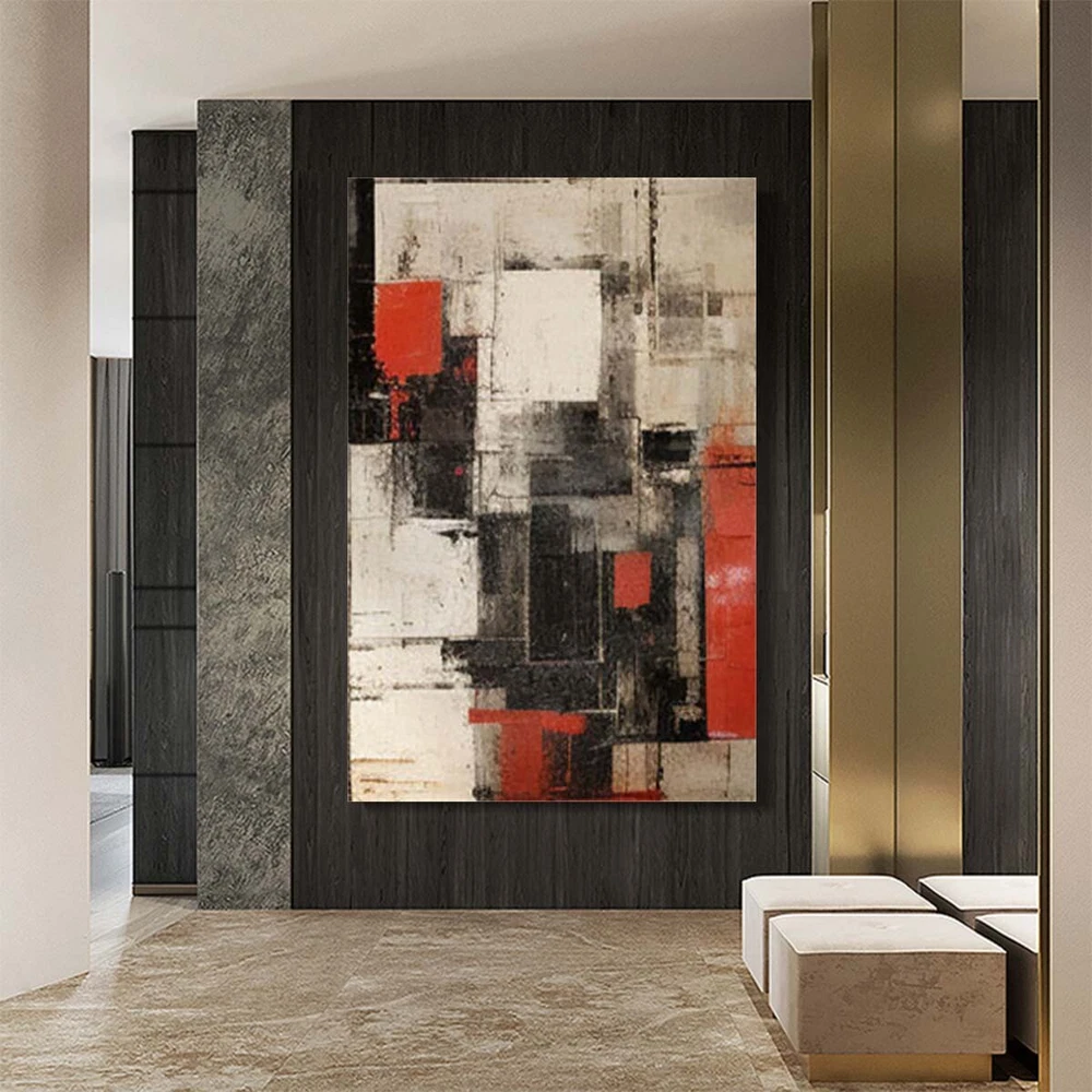 Red Hand-Painted Modern Abstract Oil Painting On Canvas Living Room Black Art