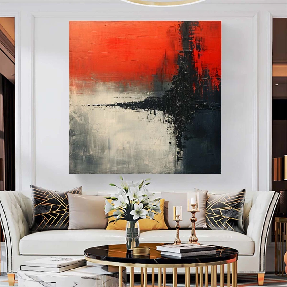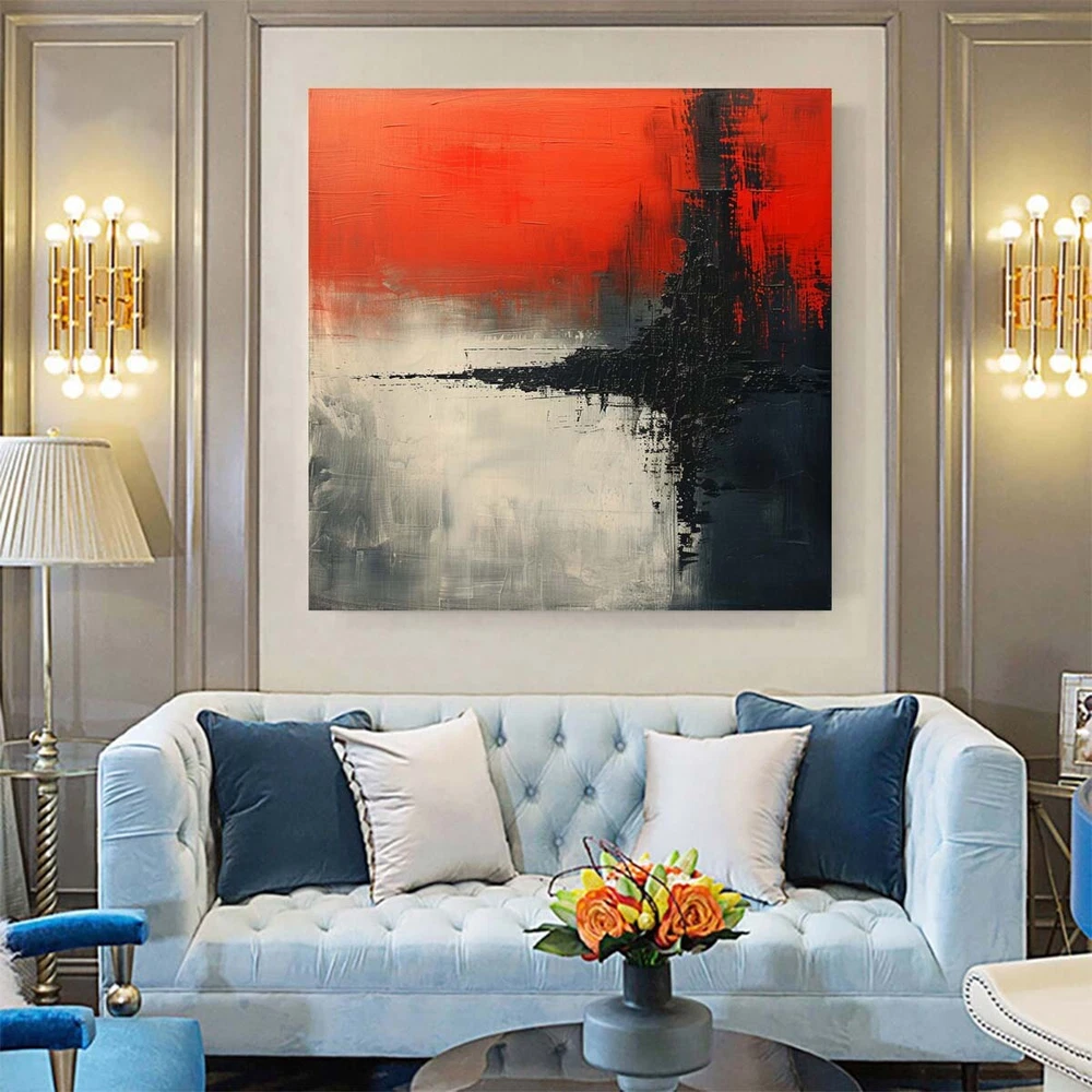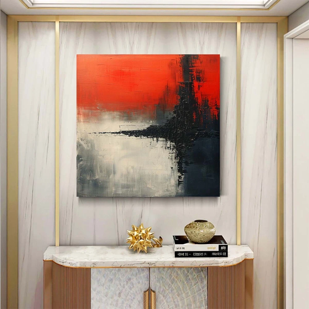 Red Hand-painted oil painting Abstract on canvas Modern wall decor art Black