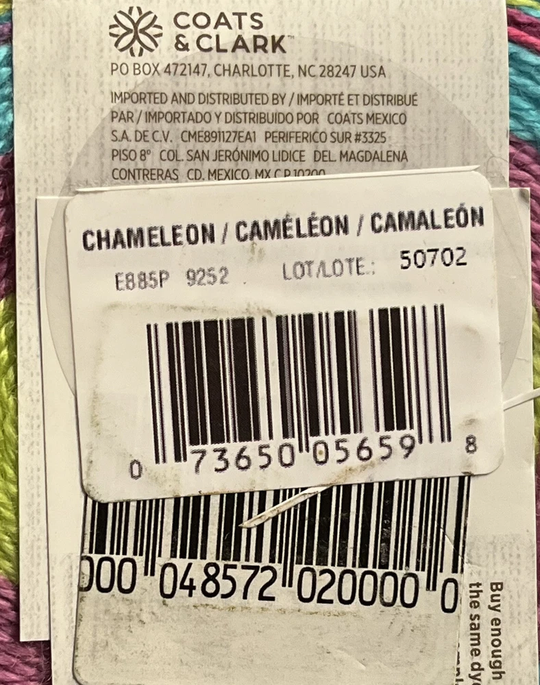 Fiber Content:Acrylicgtin13:Does not applyType:ThreadShape:BallBrand:Red HeartSuitable For:Crafts, Knitting, CrochetingModel:ChameleonUnit of Sale:UnitCountry/Region of Manufacture:ChinaUPC:Does not applyStyle:SockProduct Line:AmigurumiWeight:1 - Super Fine/SockColor:Multi-Color
