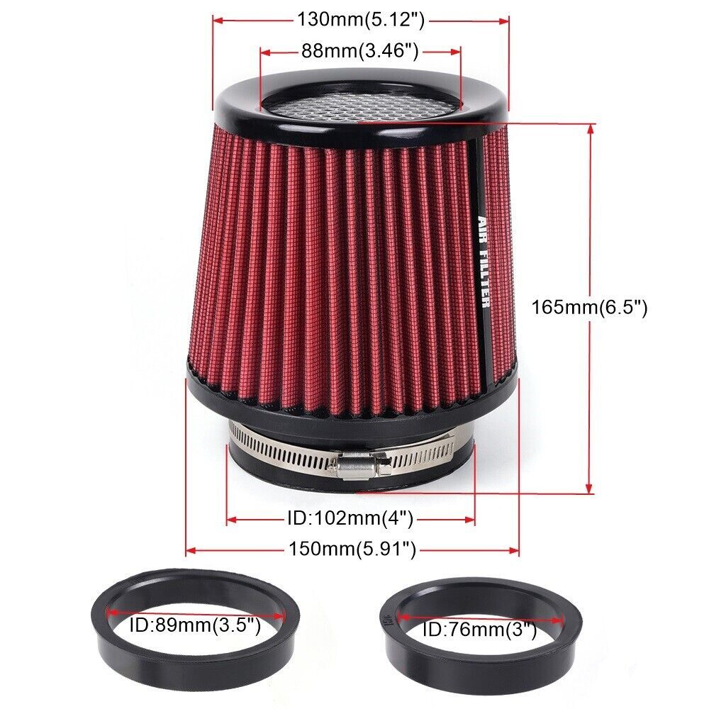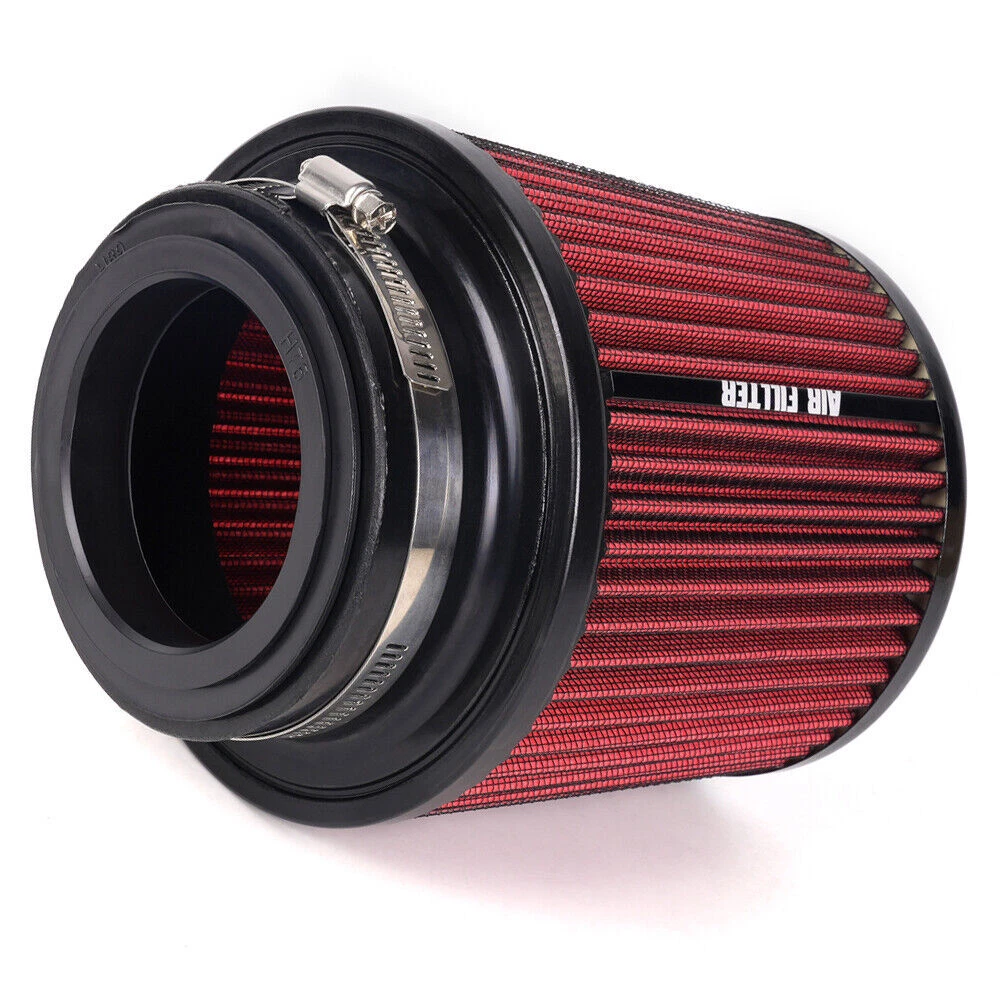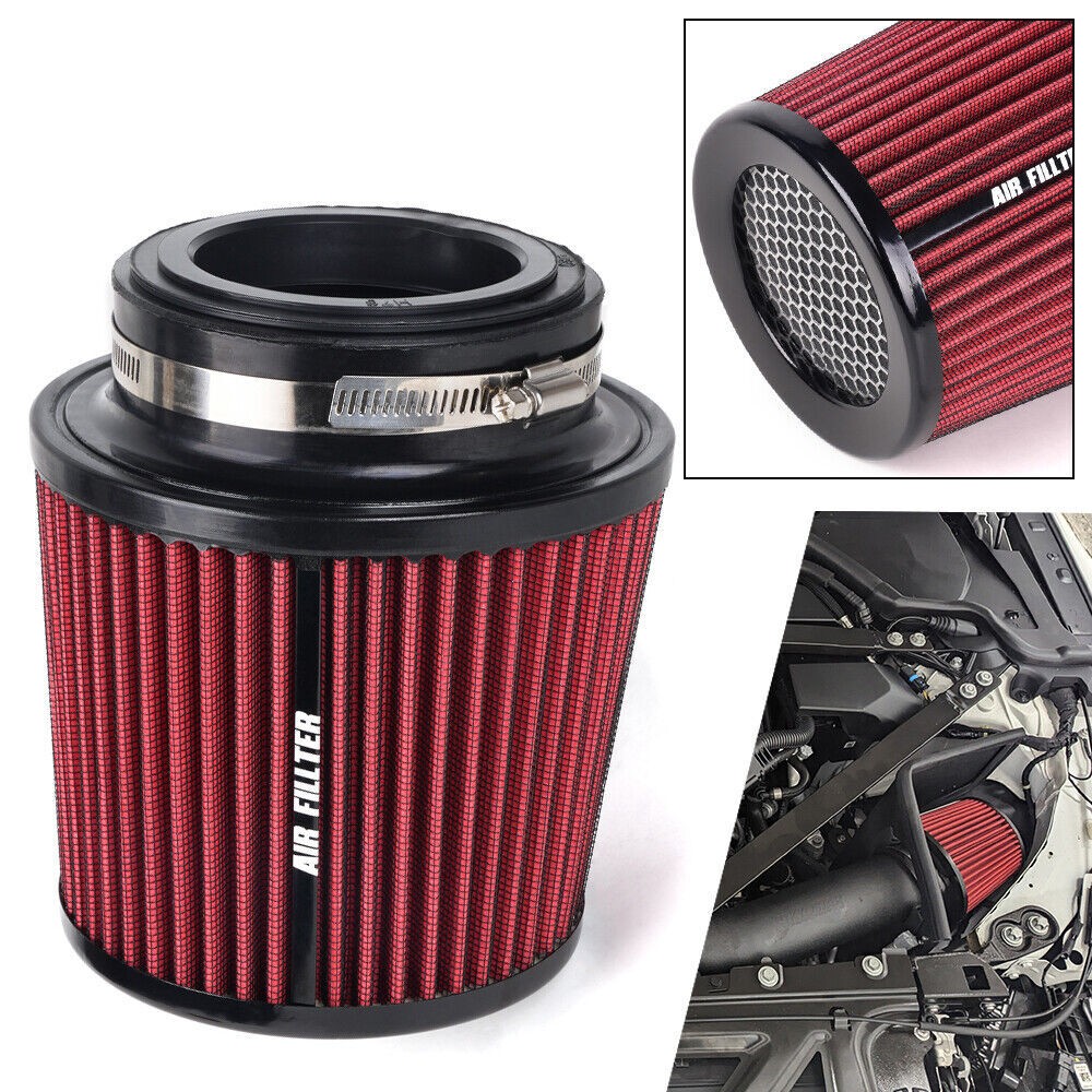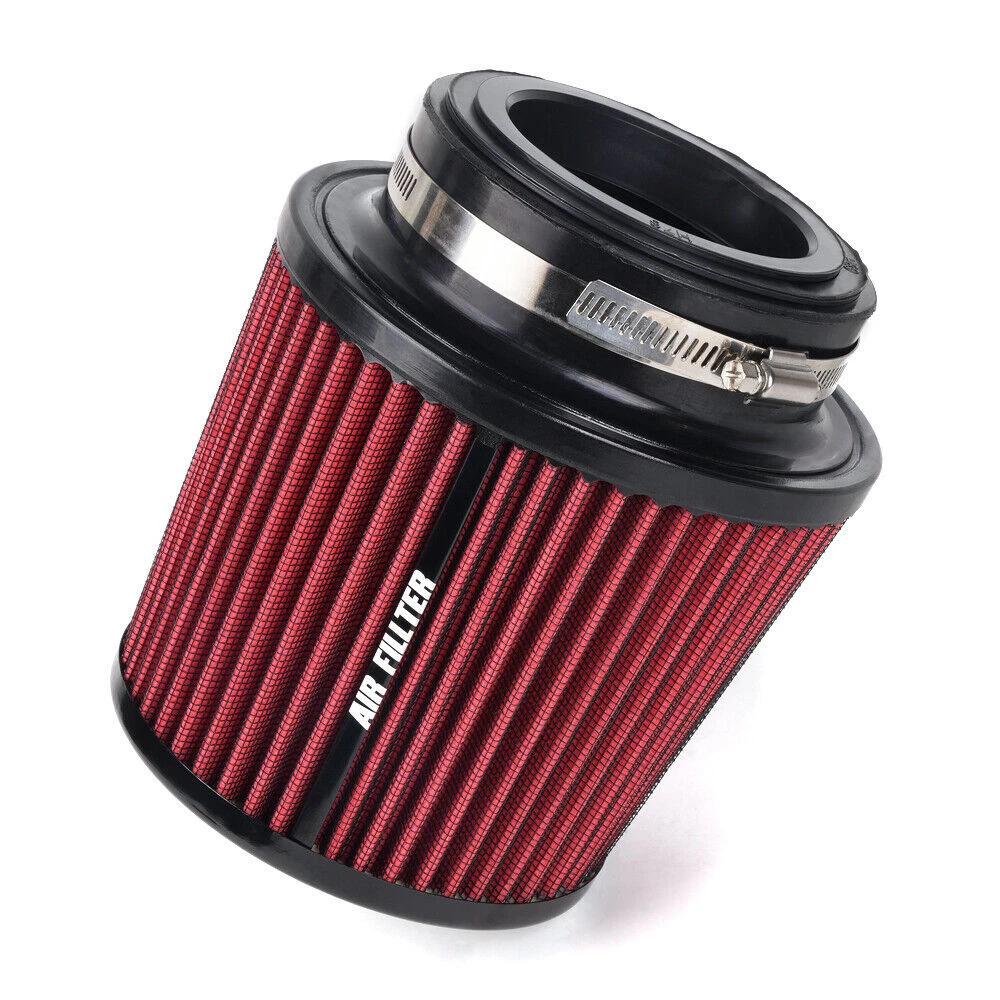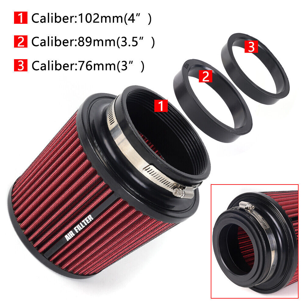 Red High Performance Cold Air Intake Air Filter 3", 3.5", 4" Inlet, 6.5" Tall SPECIFICATIONS: Type: Air Filter Material: Non-woven Fabric + Rubber + Metal Air Filter Type: Dry Air Filter Style: Round Tapered Inlet Flange Inside Diameter (in.): 3" / 3.5" / 4" FEATURES: 100% Brand New and Never Used or Install ed Increase horsepower, torque and improve the gas mileage. It universally fit for any 3inch/3.5inch/4inch air intake hose. The high flow air filter help engine to draw more cooler air resulting in better throttleresponse & higher explosive horsepower output. It comes with a washable and reusable cone air filter and a clamp. Filter consisted of 2 layers to double the filtration efficiency. [How often should air intake filter be replaced?] It should be inspected once a year or every 15,000 to 30,000 miles, but this can varybased on the car and driving environment. If you often drive through dusty terrain oron unpaved roads, you may need to change it more frequently. PACKAGE INCLUDE: 1 × Air Filter 1 × Clamp 1 × 3" ID Rubber Ring Adapters 1 × 3.5" ID Rubber Ring Adapters All accessories in the picture are included. SHIPPING INFORMATION PAYMENT WARRANTY ABOUT US CONTACT US SHIPPING INFORMATION We will only ship this item to buyers by Normal Mail, please confirm your address is correct, and if you want to change the delivery address, just feel free to contact us when you purchase. Usually, we will ship the orders out and upload the tracking number within 1-2 business days(Monday to Saturday from 8:30am-5:30pm) after you complete the payment. PAYMENT We will only accept eBay payment. Please pay using eBay payment ONLY within 7 days from the date of transaction be made. WARRANTY Please inspect your order upon receipt.No damage claims will be honored after 14 days of delivery. All item we sold come with 90 days defective warranty from the date. ABOUT US We are a powerful factory producing auto parts,and we have a professional sales and after-sales team that can provide you with excellent products and services. CONTACT US For any reason you want to contact us,We aim at satisfying every visitor, no matter what kind of situation you meet with, we will be right here to serve you. Please contact our team. If you are happy with the transaction with us, leaving us an ALL-5-STAR positive feedback would be greatly appreciated. Have a good shopping.
