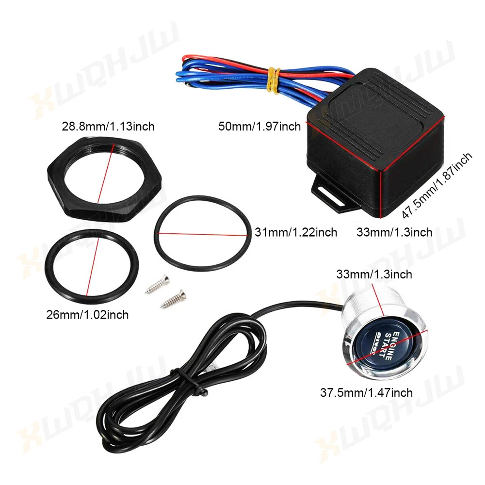 Item name : 12V DIY Car Blue LED Engine Start Push Button Switch Ignition Starter Kits Description: Condition: 100% new and high quality The highly bright red illumination allows for easy nighttime visibility. Illuminated By Blue Bright LED Light This device contains a relay box, it makes more safely when you driving your car. DC: 12V (Fits for all vehicles) Dimensions: Outer Diameter for the ring - 3.7 cm (Dia) / 1.46 inch (Dia) Inter Diameter for the hole - 3.0cm (Dia) / 1.18 inch (Dia) The same size as for a standard Cigarette Lighter Slot To Start Engine: 1. Use your key to turn the ignition key on. 2. Press the installed switch to start engine. Release as soon as the engine fires. Installation: 1. Stop the car and shut off the engine. 2. Install the push button in suitable position. 3. Connect the joint of the push button to the relay box, and place the box in an appropriate position. 4. The black line of the replay box connects the body material or the battery negative. 5. Two blue lines: one connects to ACC Line and the other to Start Line 6. The blue line connects to the power supply 7. Black line to connect the battery negative Item included: 1x Engine Starter Switch 1x Relay Box 1x Plastic Outer Ring (Black) INSTALLATION: This product requires professional Installation. How to wire: 1. Two Blue Wire:to ACC Line and Start Line 2. Red is Postive,Black is Negtive The Engine Starter Switch allows you to start your vehicle's engine only by the installed button. This universal engine starter switch allows for installation on any vehicle. Notice: Please allow 0.5-1 cm error due to manual measurement. Pls make sure you do not mind before you bid. The color may have different as the difference display , Pls understand. Compatible With: Universal Fits Almost car models.(Please confirm the size before you purchase from us) On Dec 15, 2024 at 18:08:43 PST, seller added the following information: