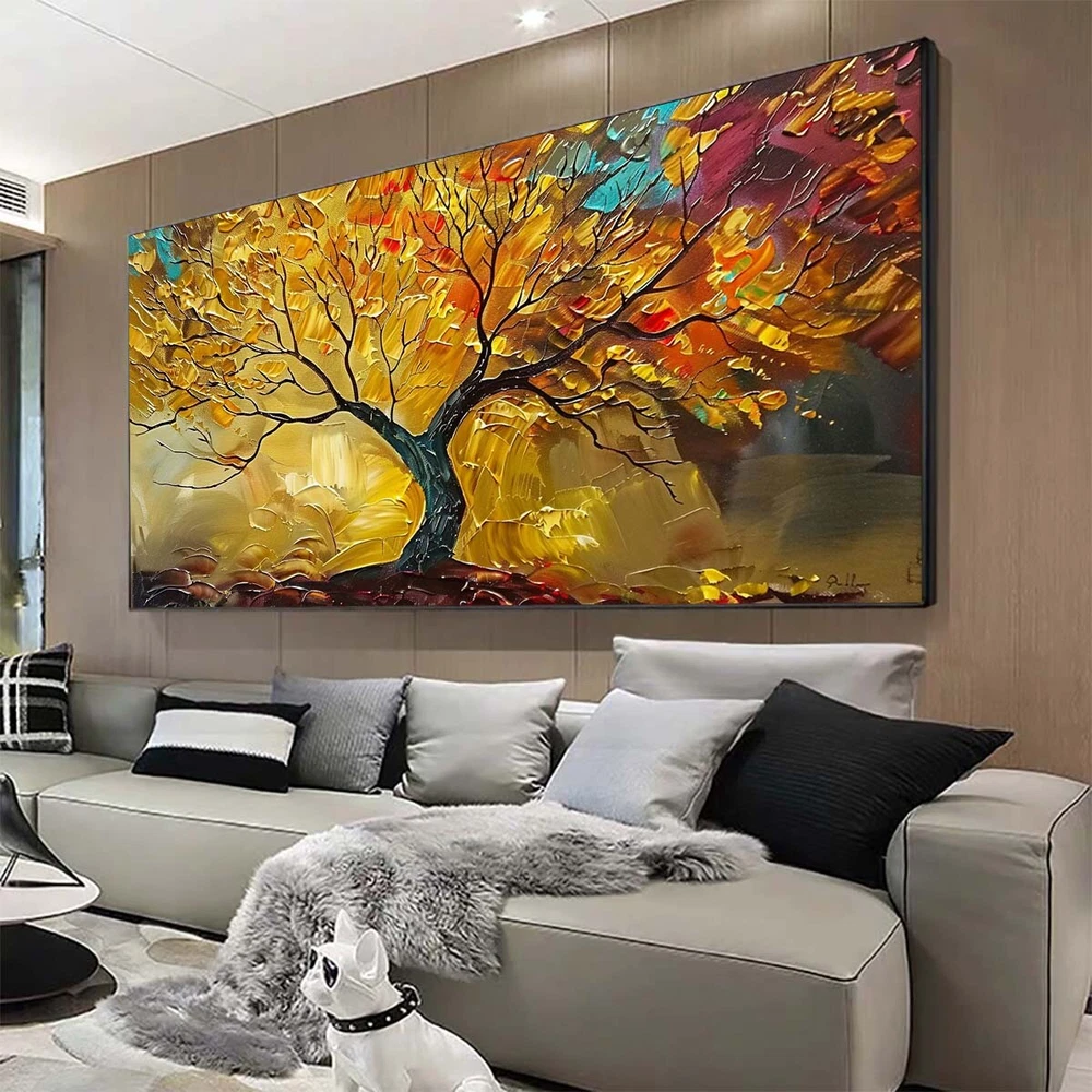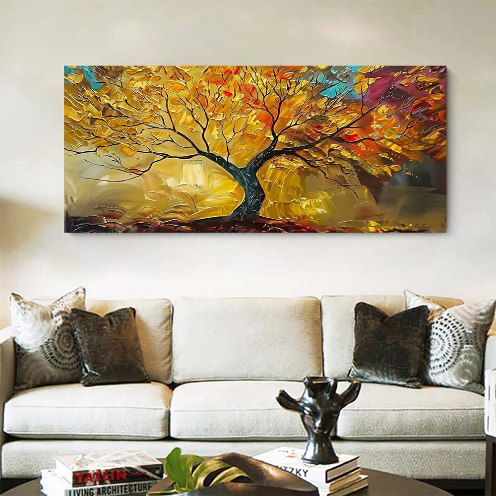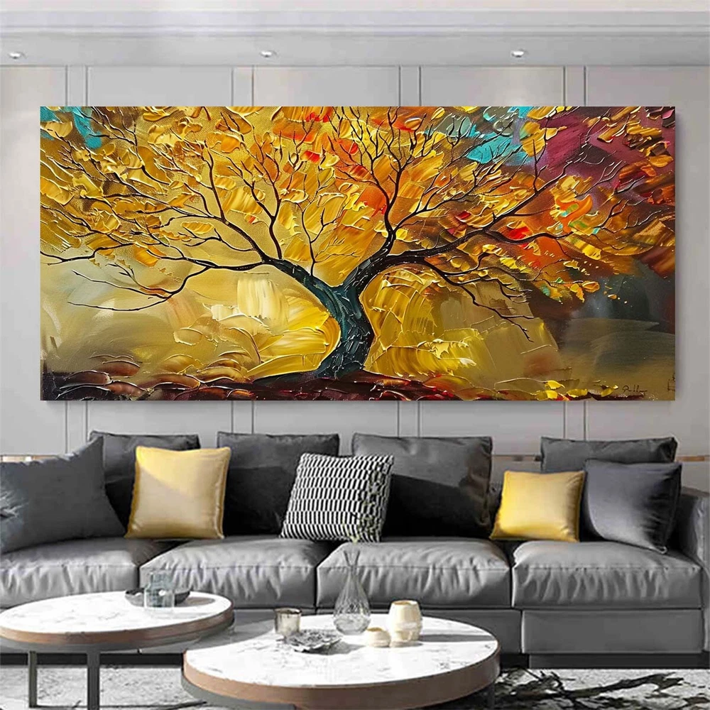 Red Modern Abstract Painting Golden Tree 3D Oil Painting Hand Painted On Canvas
