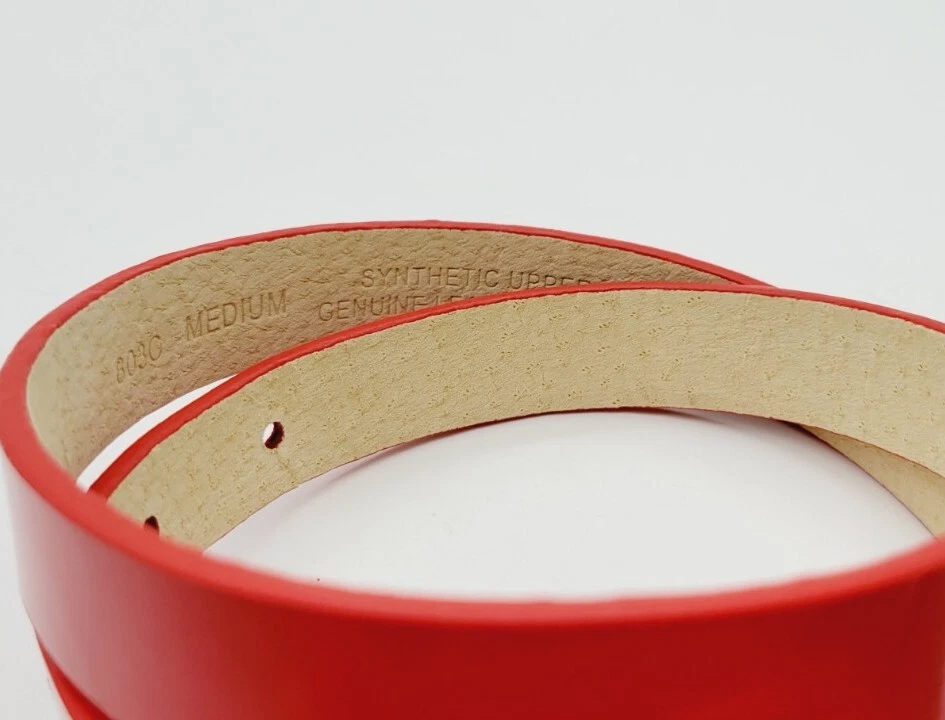 Handmade:NoFeatures:Adjustable, StretchSize:MHardware Material:SilverMPN:803CPOPgtin13:Does not applyColor:Lipstick RedDepartment:WomenType:BeltBelt Width:.75 inMaterial:Leather, Patent LeatherUPC:Does not applyCountry/Region of Manufacture:ChinaPersonalize:NoPattern:SolidModified Item:NoWaist Size:39 in end to end AdjustableBrand:Charter ClubVintage:YesSize Type:RegularAccents:WovenStyle:Waist BeltTheme:Designer Belts