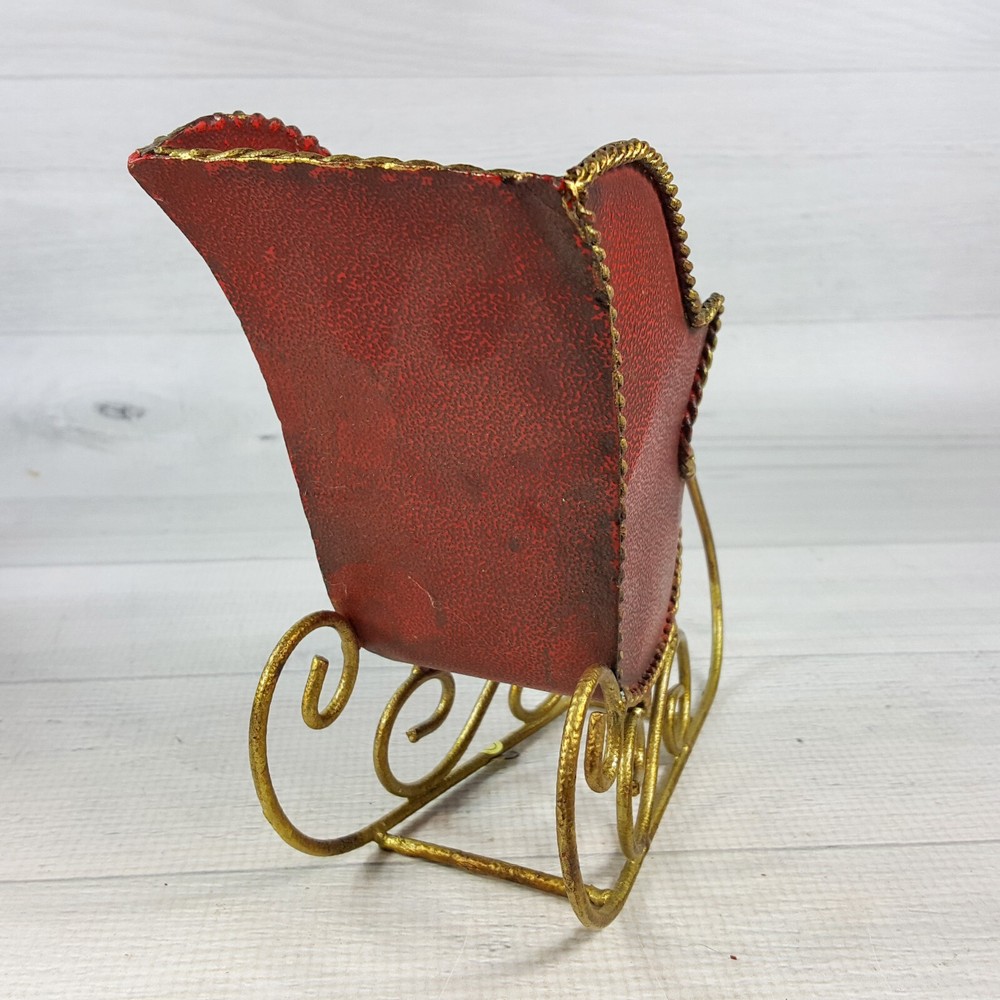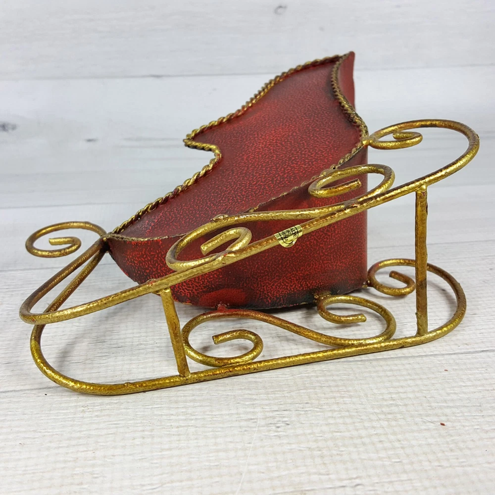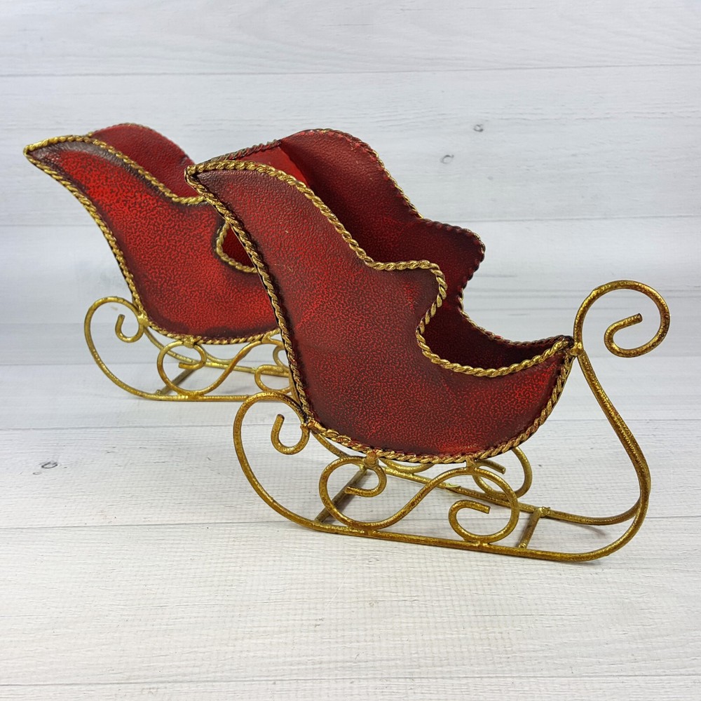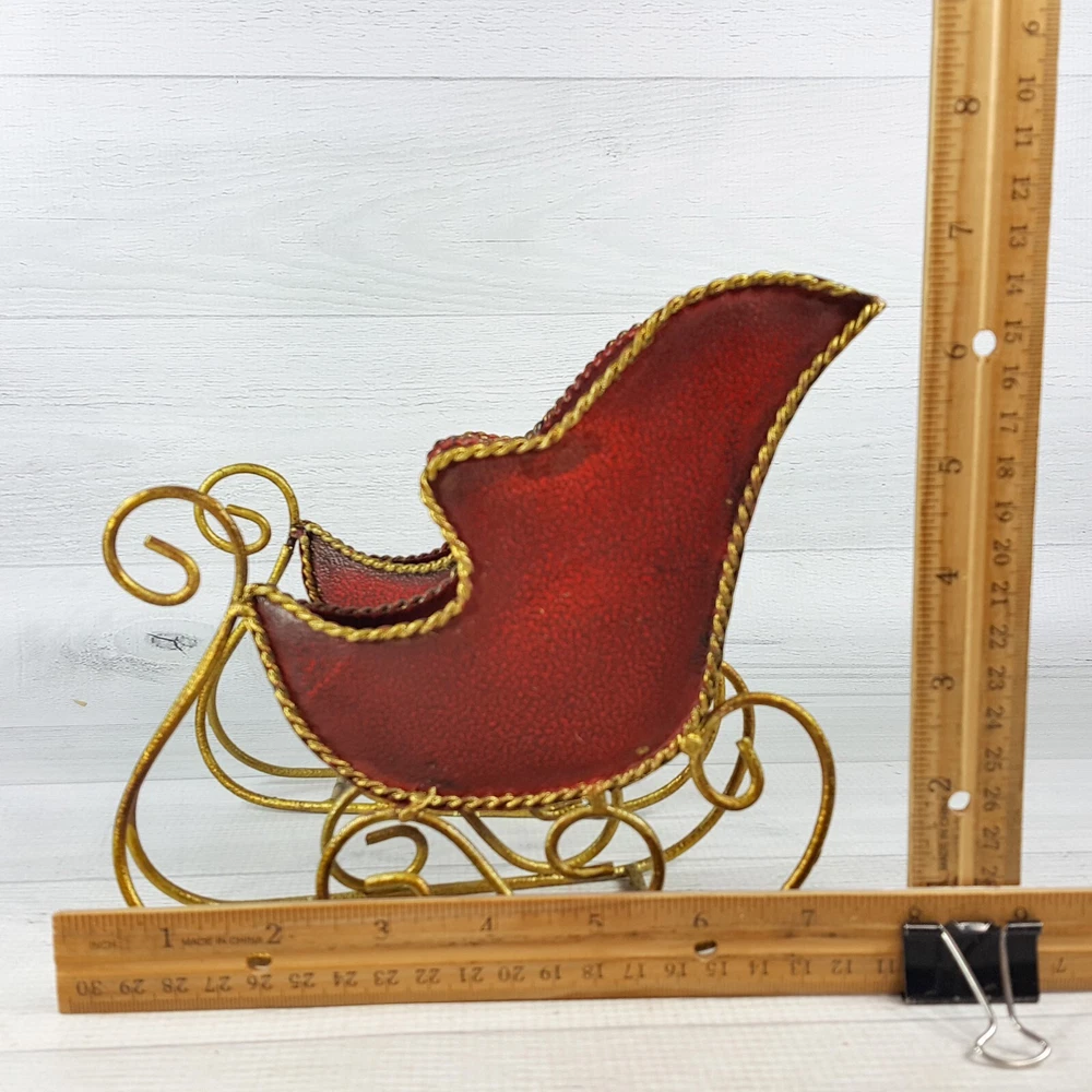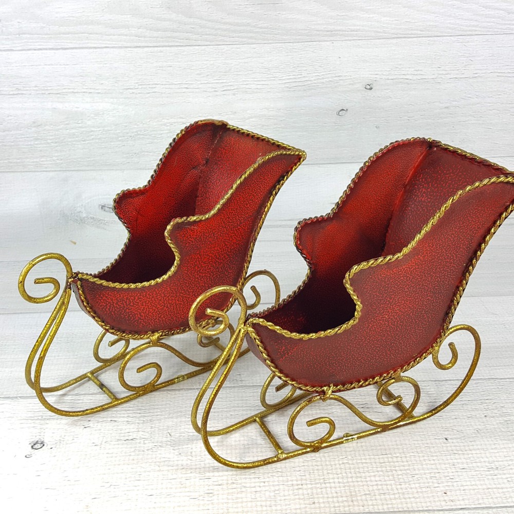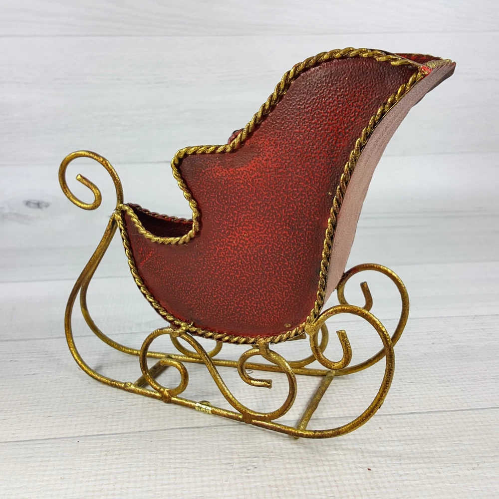 These adorable 7" red metal sleigh figures with gold accents are perfect for adding festive charm! The textured finish gives them a cozy, vintage feel, and they're in great condition—no chips or cracks. Love how they instantly brighten up my holiday decor! The size is just right for shelves or tabletops. Super cute find!