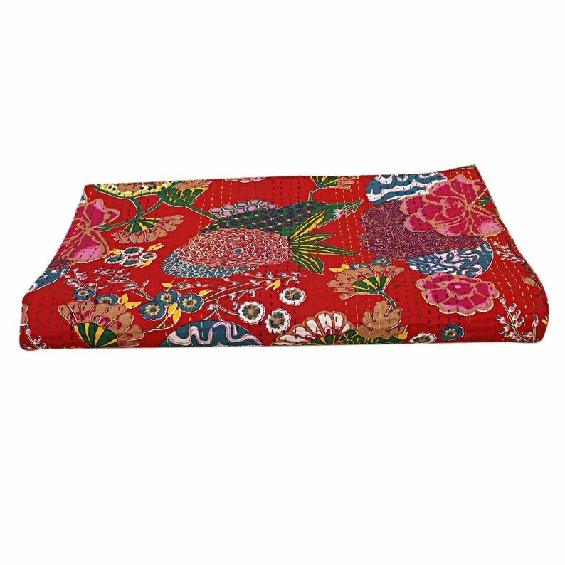 Product Details: Item - 1 PC Indian Fruit Print Kantha Quilt. Fabric - 100% Cotton Fabric. Dimension - 90" X 108" Inches ( 225 X 274 CM) Colour - As Show in image Wash Care - Normal Hand Wash In Cold Water. Product Description: Indian Floral Cotton fabric Hand Kantha Quilted Queen Size Quilt, Blanket / Bedspread These Queen Kantha quilt is made by two layer cotton fabric. These Kantha quilt is made by most of valuable hand art to give a unique Kantha pattern. Payment policy: We accept the payment by pay pal. International buyers are responsible for their countries duties and taxes.