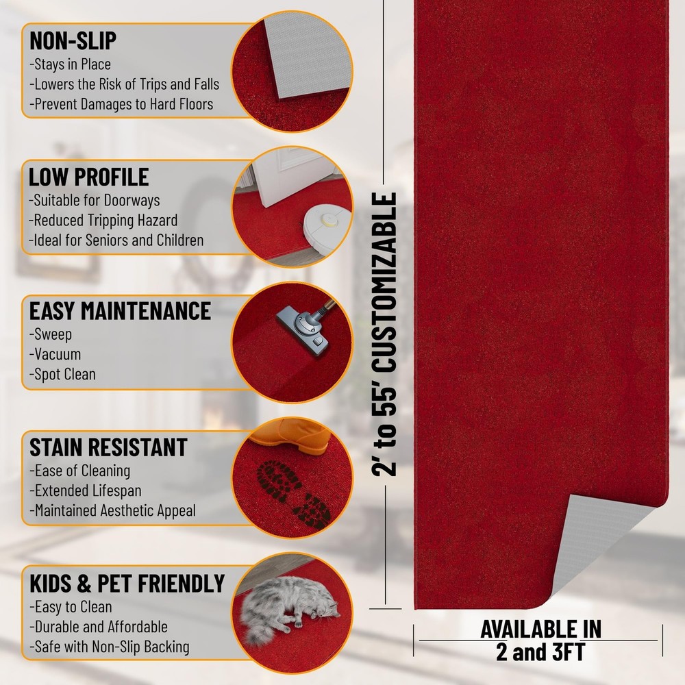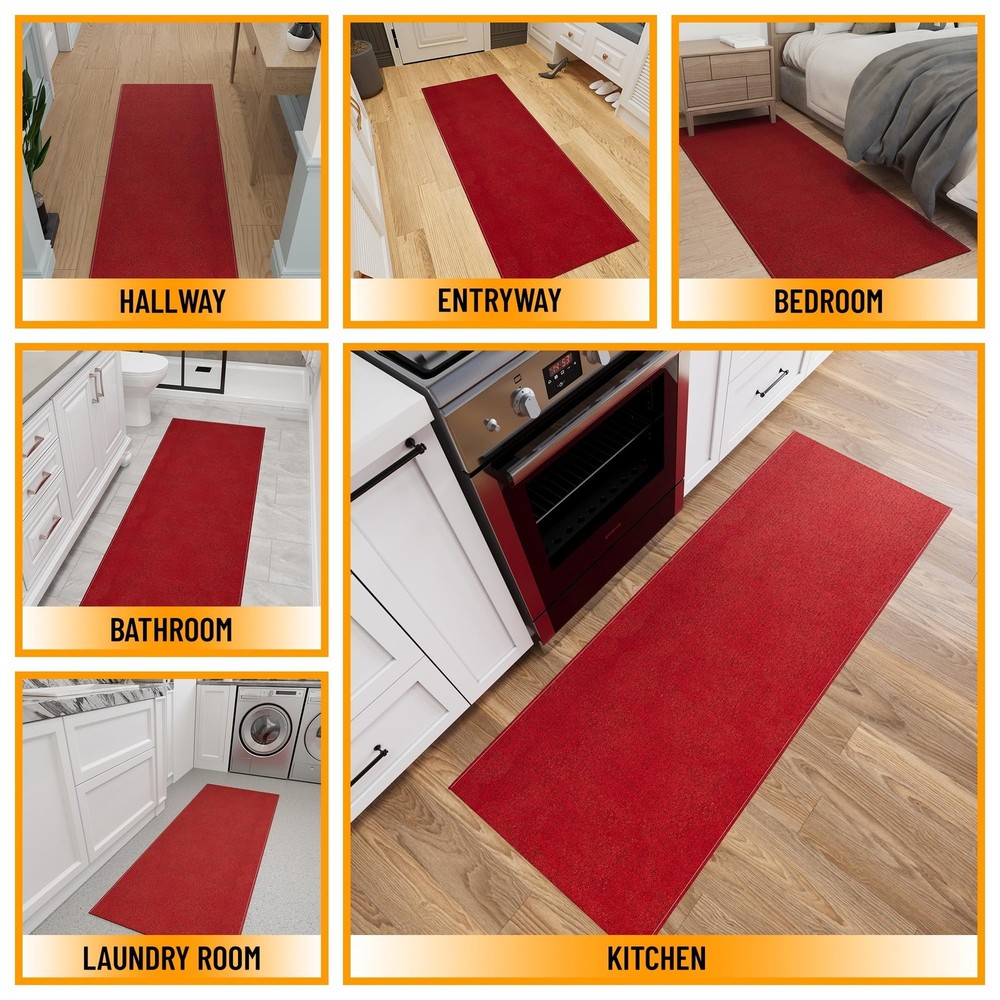 Absolutely love this runner rug! The sleek red color adds a pop of style to my hallway, and the ultra-thin design fits perfectly under doors. The non-slip backing keeps it secure, even with heavy foot traffic. It’s easy to clean and the stain-resistant fabric is a lifesaver. Great quality for the price—highly recommend for kitchens, bedrooms, or entryways!