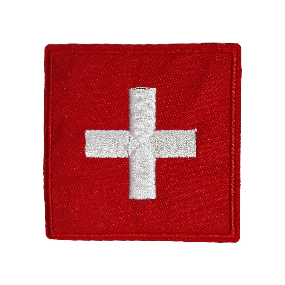 Red White Cross Patch Embroidered Iron-On Applique Military hospital EMT Medical