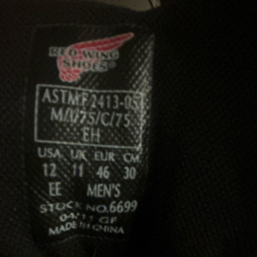 Red Wing Shoes 6699 Men's Work Boots ASTM F2413-05 EH MA/75/C/75 Size 12 EE