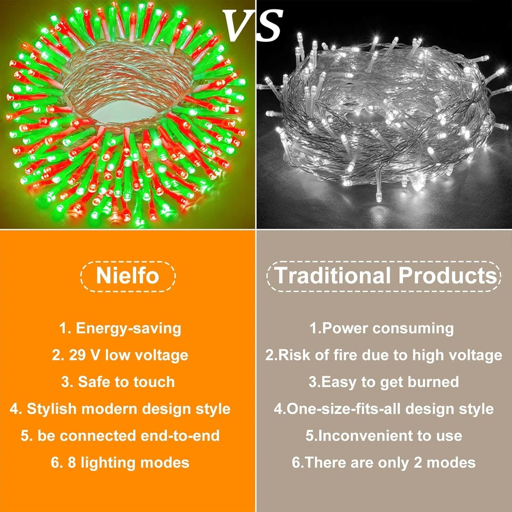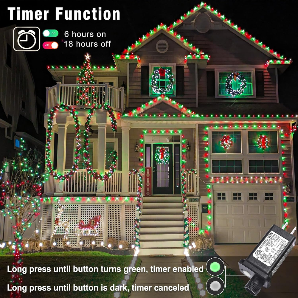 Store New Arrivals Add to Favorite View Feedback Contact Red and Green Christmas Lights Outdoor Indoor - 66Ft 200 LED String Twinkle Tree Lights Clear Wire Connectable 8 Modes Timer Plug in Waterproof for House Room Patio Window Xmas Holiday Decoration Description Item model number BG-CL3M3-306L01 Light Source Type Energy Efficient Style Christmas Lights Outdoor Number of Items 1 Power Source Corded Electric Number of Light Sources 200 Control Method Touch Light Direction Adjustable Theme Christmas Batteries Included? No Controller Type Button Control Batteries Required? No Material Plastic, Copper Seasons Christmas Package Dimensions 6.73 x 4.13 x 3.5 inches Included Components User Manual, LED String Lights, Adapter Indoor/Outdoor Usage Outdoor Light Color Red and Green Water Resistance Level Waterproof Item Weight 14 ounces Occasion Holiday Special Features Timer; Connectable; Waterproof; 8 Lighting Modes; Memory Special Feature Timer; Connectable; Waterproof; 8 Lighting Modes; Memory Part Number BG-CL3M3-306L01 Color Red and Green Wattage 6 watts Voltage 29 Volts Size 66ft 200LED 8 Lighting Modes & Timer: The Christmas lights outdoor has 8 different lighting modes, short press the button on the adapter to switch mode. Long press the button until it turns green, timer enabled, the led lights will automatically cycle on for 6 hours a day and off for 18 hours. Waterproof & Durable: The Christmas tree lights is IP44 waterproof and sun-resistant, this allows the led twinkle lights to be used outdoors for years without damage. But please note that the adapter is not waterproof, please do some waterproof protection. Be applied anywhere: This outdoor Christmas lights can be used indoors and outdoors anywhere you want to decorate, such as tree, wedding, party, handrail, deck, window, wall, Christmas decorations, bush, house, patio, porch, bistro, commercial center etc. Plenty of lights will bring a warm and cozy atmosphere. End to end connectable: The end of the led lights has an extendable plug, so these led fairy lights can plug into each other, so if you have more than one strand you will just need one wall plug in. Then all outdoor Christmas lights will be controlled by a plug, and the modes of all twinkle lights for Christmas tree will be synchronized. Safe to use: Nielfoi LED lights use 29 V low voltage that is lower than human body safe voltage for safe use, definitely no risk of electric shock, it is safe for children and pets. All Christmas lights comply with UL testing standards, and the LED beads are low consumption and energy saving, no overheat after long time using, no risk of fire. Christmas Lights Outdoor Indoor Decorations ABOUT US We offer the best prices around on high quality products. Our E-store includes media such as books, movies, music and games while offering electronics, toys, sporting apparel, clothing, tools, general home, garden items and more. SHIPPING We are always working hard to ensure your package arrives as soon as possible. Please understand that some factors like weather, high postal traffic, and the performance of shipping companies are outside of our control. We offer free shipping to the lower 48 states and ship within 2 business days of payment, usually sooner. We do not accept P.O. Boxes. Please provide a physical address. RETURNS We offer a 30-Day Return Policy on items which you are not completely satisfied with. You have the option for a full-refund or an exchange of the item. No returns are available on items shipped outside of the USA. PAYMENT We accept PayPal. CONTACT US This page content is yet to come Please ad us to your favorite seller and visit again later Thank You CUSTOMER SATISFACTION We try our very best to make sure every customer is completely satisfied. If there's a problem, message us! We're happy to help.