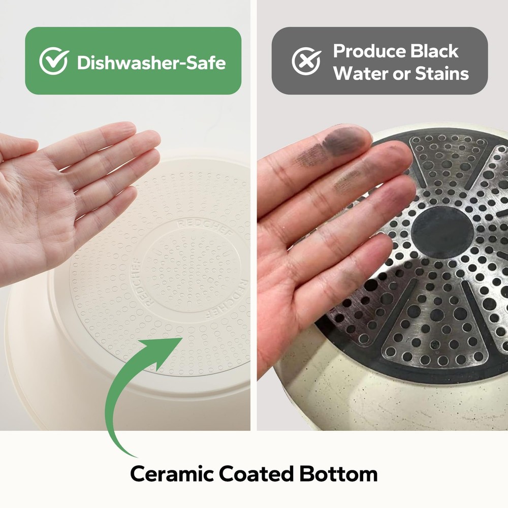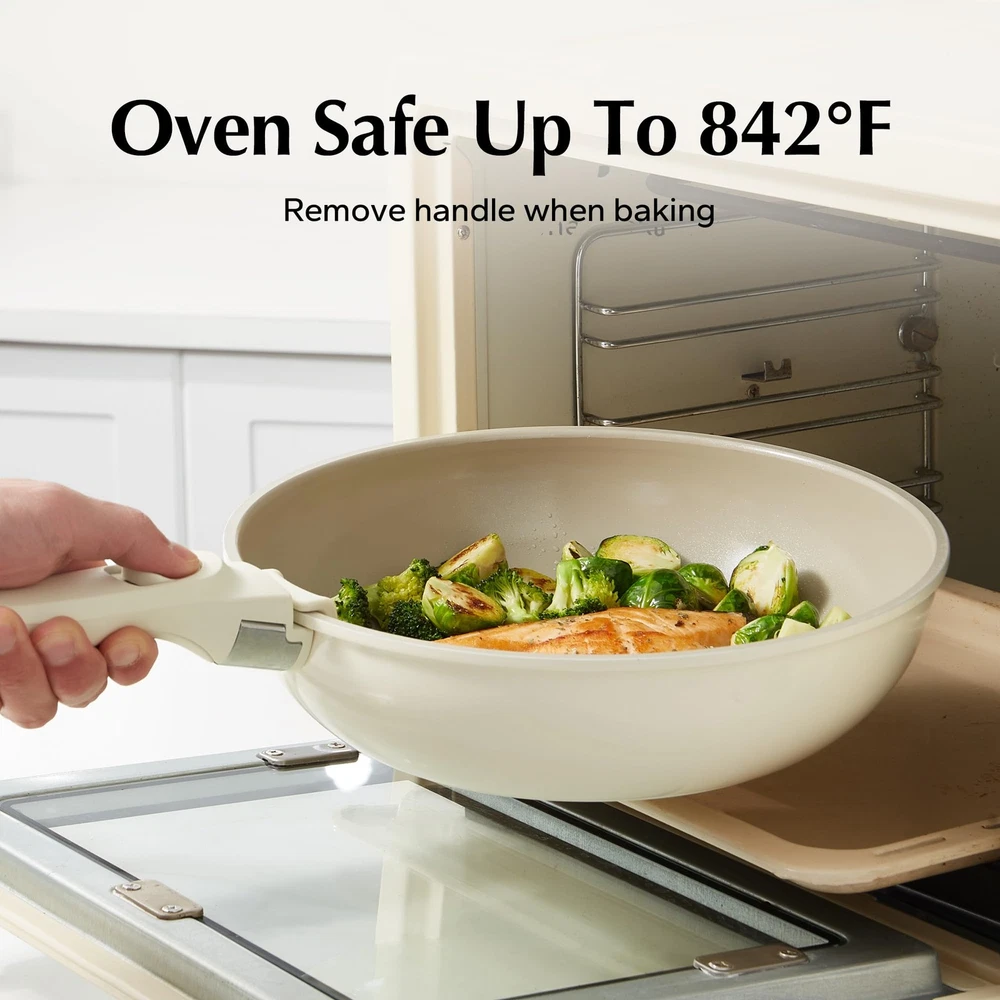 Ceramic nonstick pans and pots from the Redchef detachable non-stick cooking sets are often chosen for their scratch-resistant surface and oven-safe design by most cookers. The cookware sets have the below features: Ultimate Multifunctionality: The Redchef cookware set features detachable handles that can be removed from the stove, placed in the oven, on the table, or in the fridge. The stackable design allows for optimized storage and can save up to 75% of space. Housewarming kitchen gadgets idea: Curate a new apartment essentials with our non stick cookware set with a paper towel or rinsed in the sink. As a cooking and dishwasher set, it only needs to be cleaned once. Compatible to all stovetops: The cookware set is suitable for RVs, camping, and home use. The universal bottom is suitable for gas, electric, halogen, induction, and ceramic stovetops. High Performance: The cookware set has undergone professional safety testing and can withstand up to 26 pounds/12 kilograms. It has balanced convenient features, quick and even heat distribution, and non-stick properties similar to other ROKURWOK cookware sets. Harmless: The cookware set is made of food-safe materials and does not contain PFAS, PTFE, lead, or cadmium, making it safe for your family. Sustainable: The cookware set is made with zero waste cookware materials and can reduce carbon dioxide emissions by 60%. Natural Ceramic Coating: Made of natural ceramic, our Redchef kitchen ceramic cookware set is no Teflon and no PFAS, PTFE, PFOA, lead, or cadmium 75% Space-Saving: Save up to 75% more space with stackable pots and pans set and detachable handles. Neatly stack all the pots and pans, saving 75% of cabinet space—keeping the kitchen organized and tidy. Perfect for compact kitchens and an ideal choice for RVs or campers Ultimate Convenience: Removable handle for the ultimate versatility– go from ALL kinds of stoves to the oven, to the grill, to the fridge, and onto the table in one click! The handle's detachability brings a new cooking style Oven Safe: All Redchef's pots and pans cookware set is oven safe up to 842 degrees, making cleanup a breeze and giving you more options for cooking and baking.These Redchef ceramic nonstick pots and pans cookware sets are compatible with all stovetops including gas, electric, induction etc Longer Time Lasting: Redchef's pots ans pans sets itself apart with its unique patented technology, offering a stronger and more durable surface coating, resulting in a longer lifespan compared to most ceramic pots and pans set on the market. Whether it's wear resistance, high temperature resistance, or non-stick properties, it excels, satisfying users' demand for premium ceramic pots and pans set Redchef ceramic pot and pan set has everything you need for your day-to-day cooking and is also suitable for RV or camping, making it an ideal cookware set for outdoor cooking Natural Dual-Sided Ceramic Coating: Redchef ceramic pots and pans set boasts an innovative dual-sided ceramic coating, inside and out. This advanced ceramic finish ensures effortless cleaning, allowing you to effortlessly wash both the interior and exterior of your pots and pans